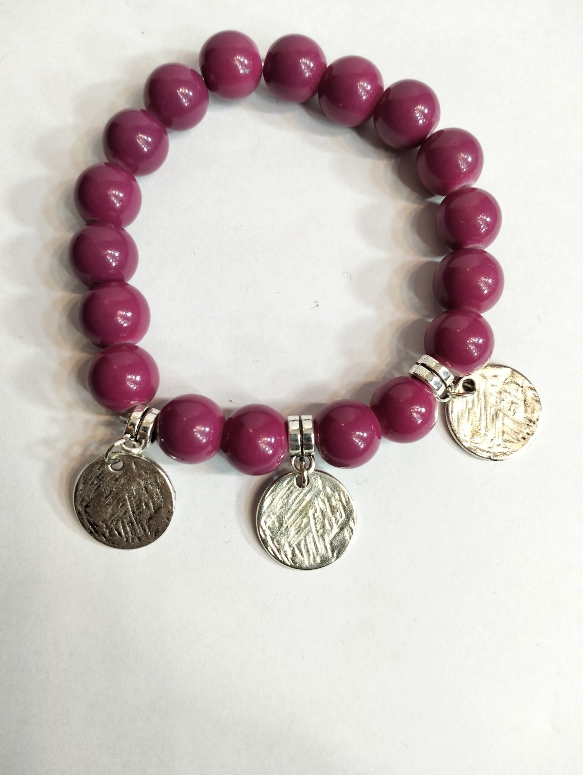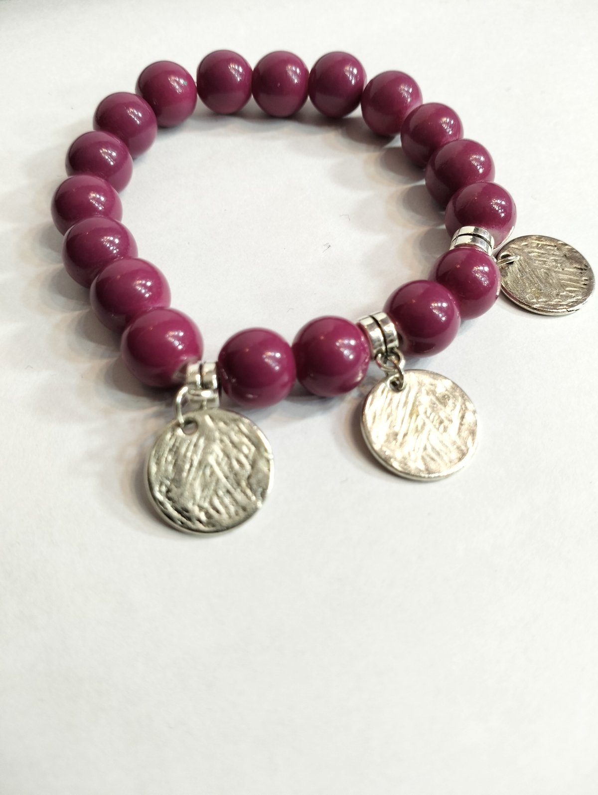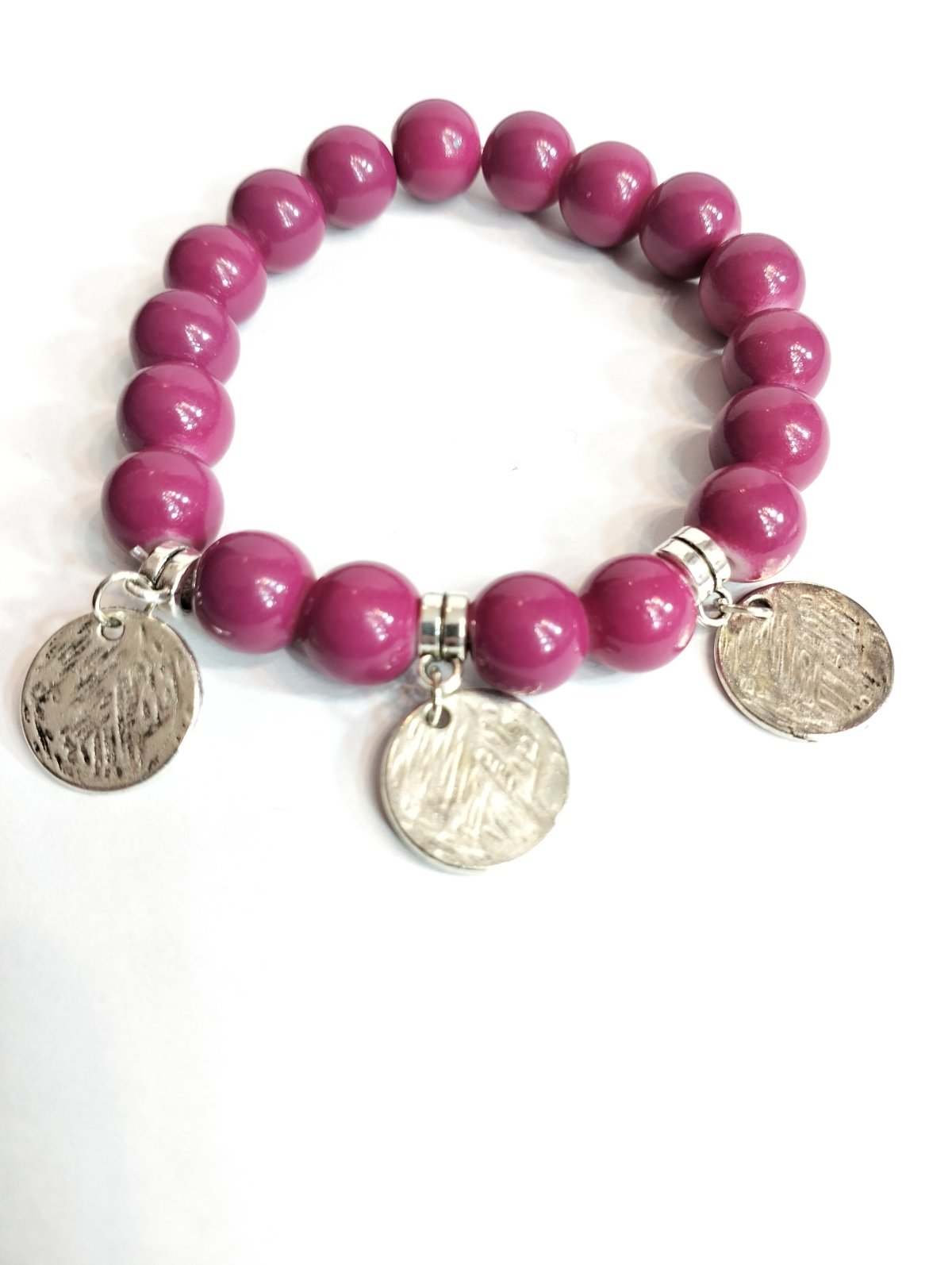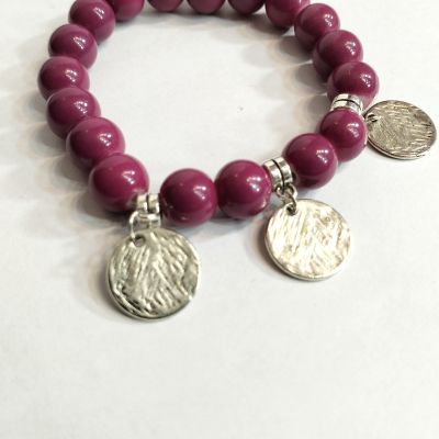 Pink alabaster bracelet with silver metal pendant