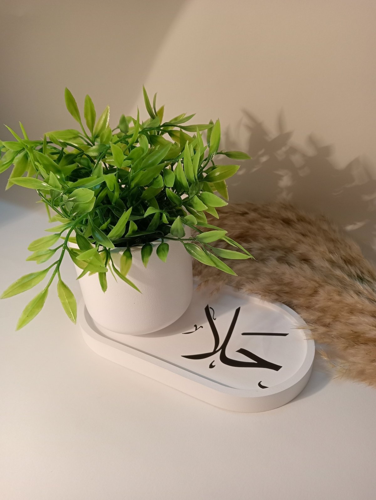 Concrete set consisting of an oval coaster and a planter insulated with a wax seal against water and the name is upon request