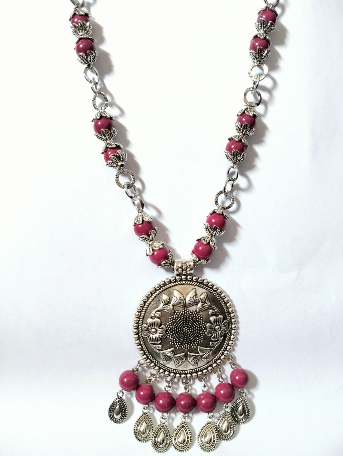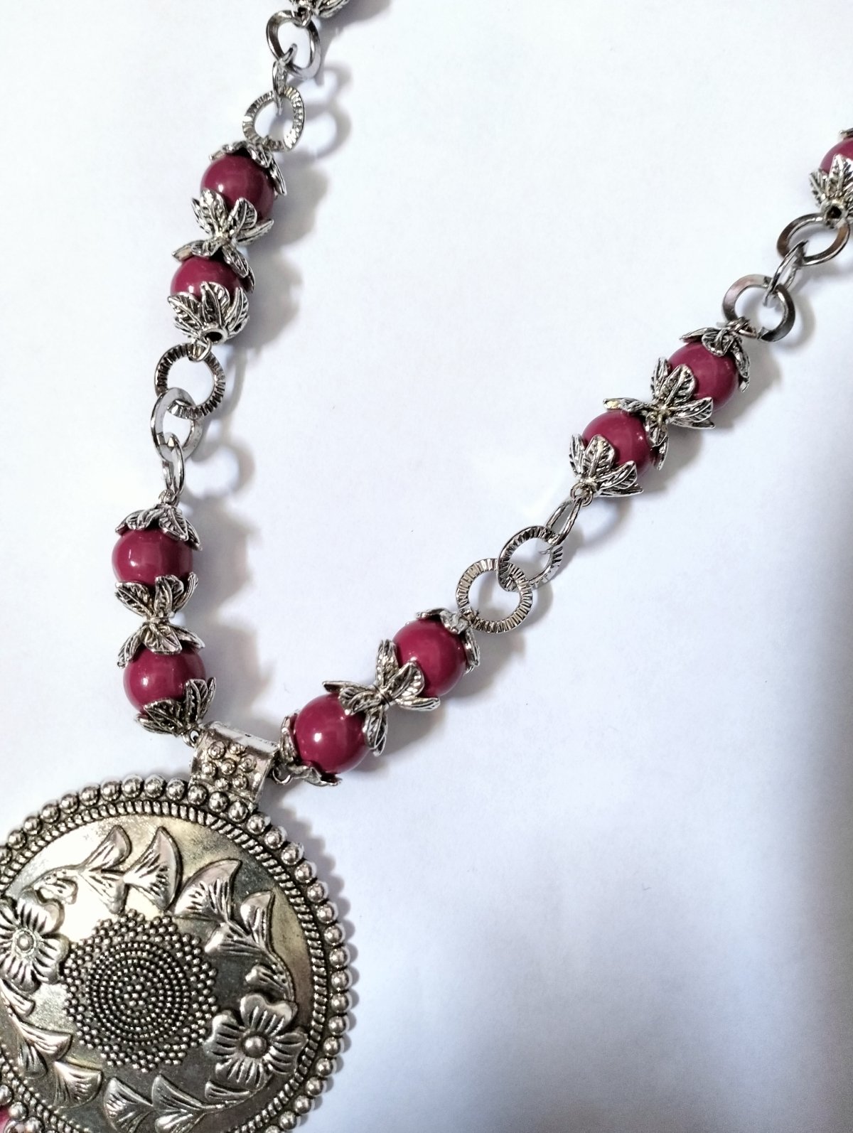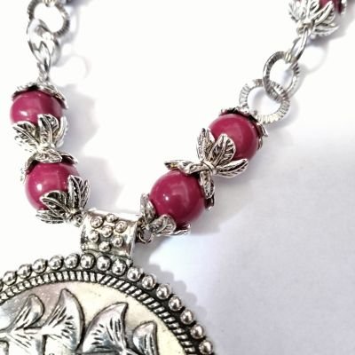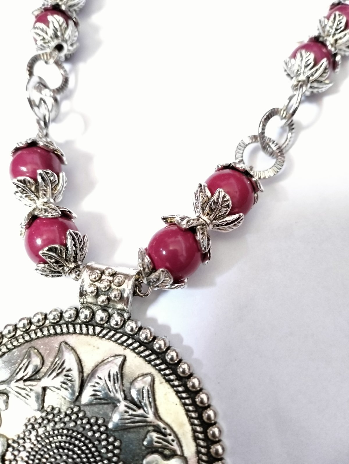 Necklaces alabaster stone pink colour with metal pendant silver colour length 42cm