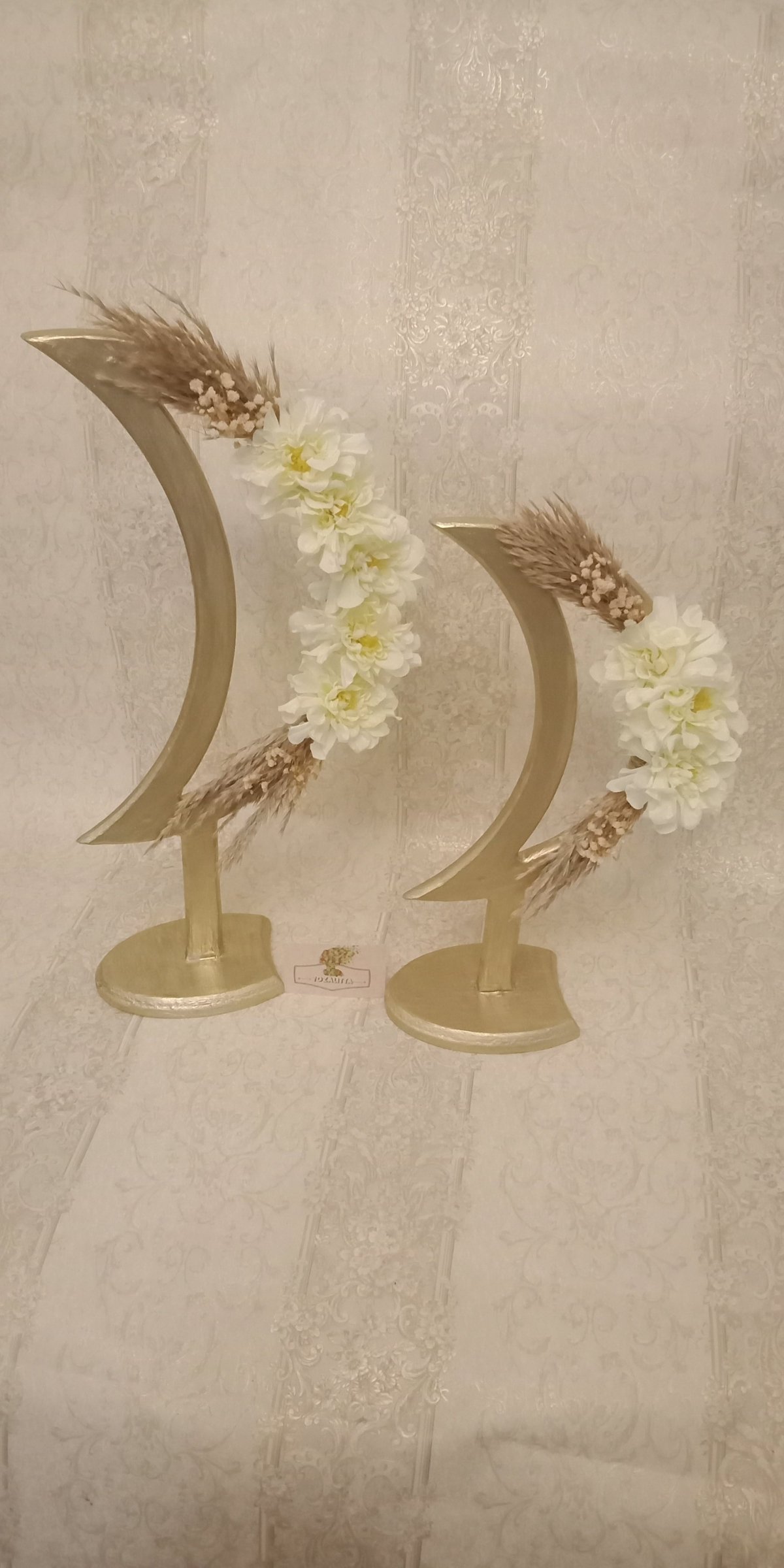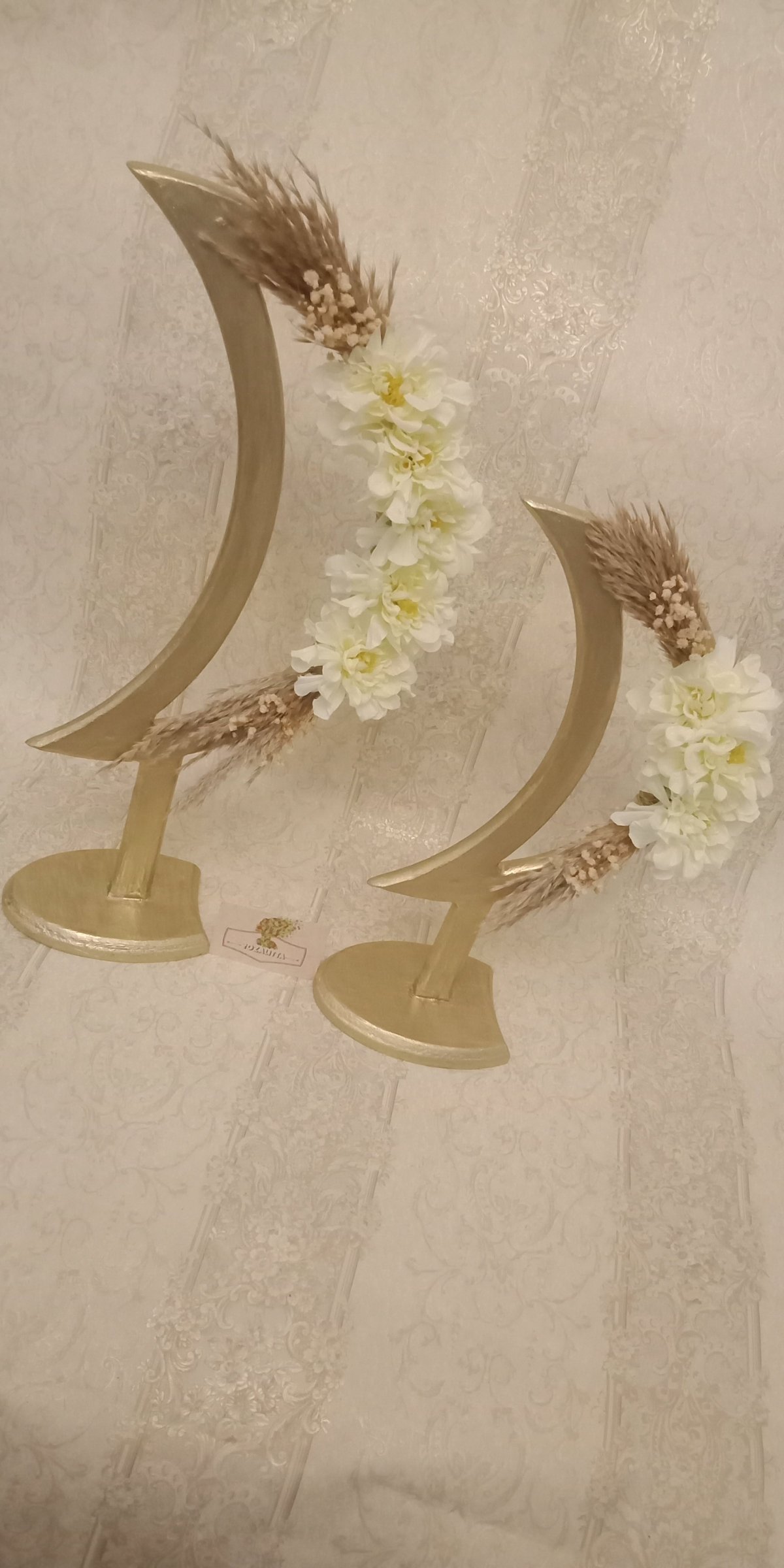 Ramadan Crescent Set Made of wood Crescent sizes Large 50 cm and small 40 cm With off-white roses and baby flowers