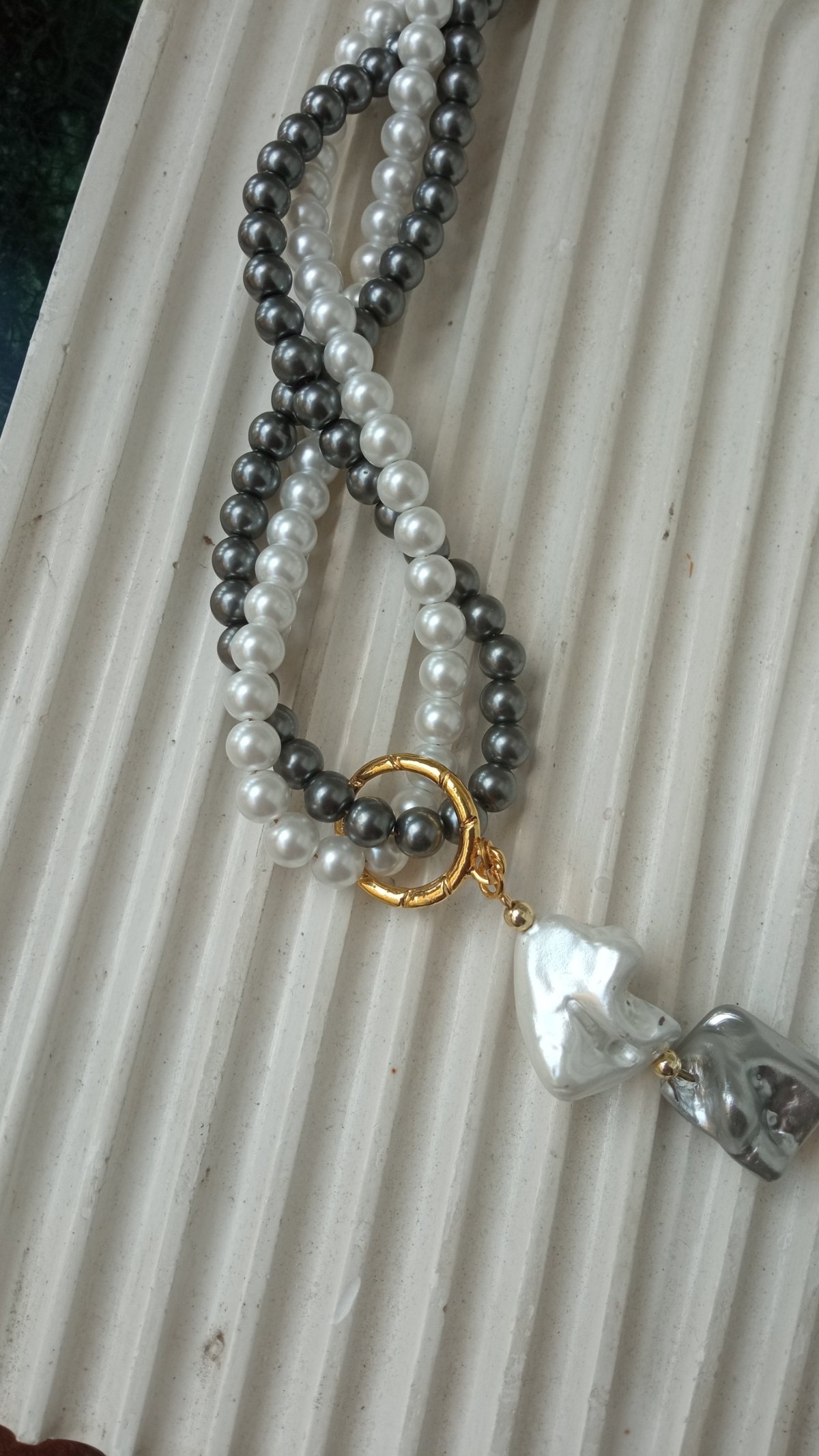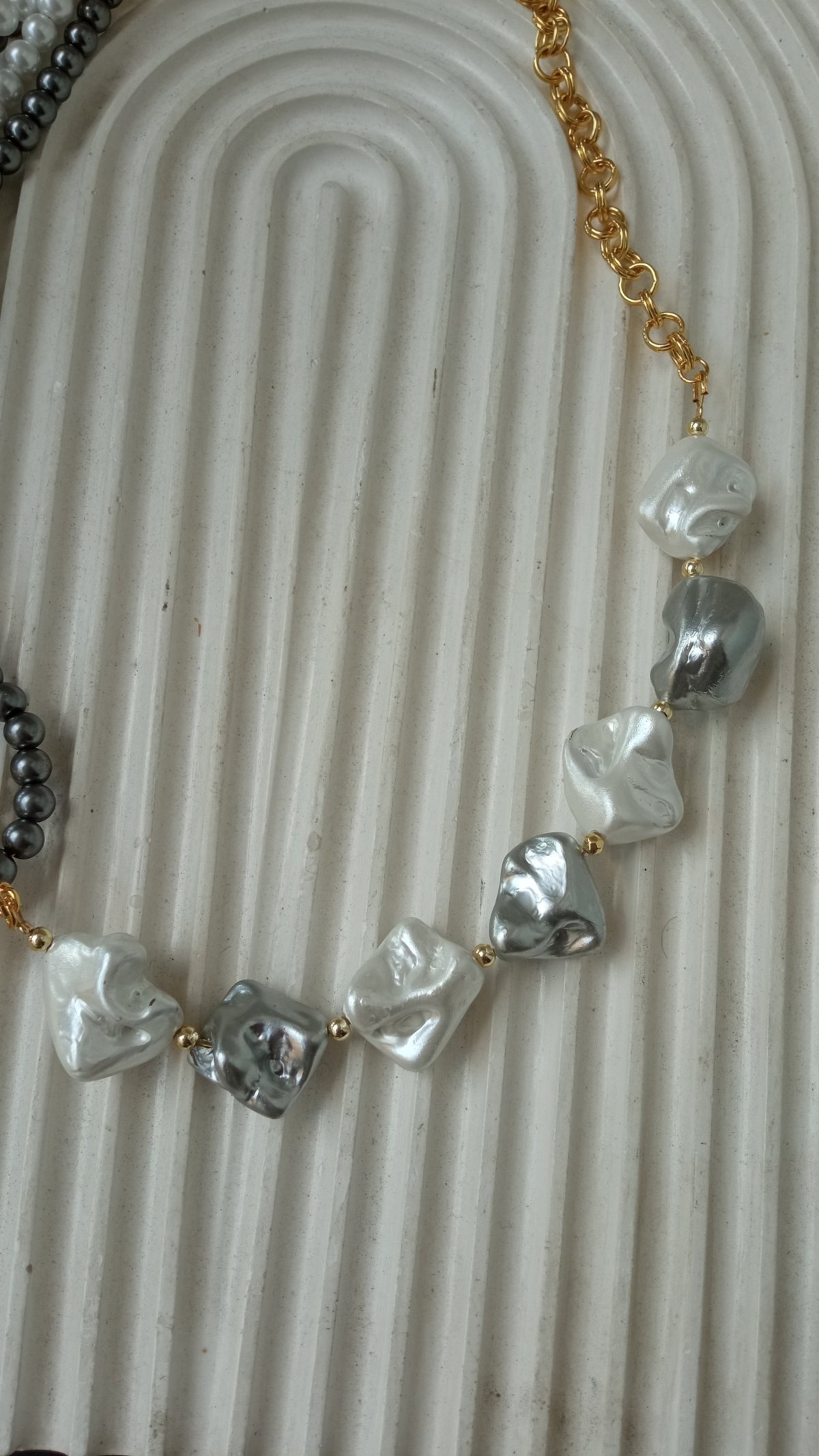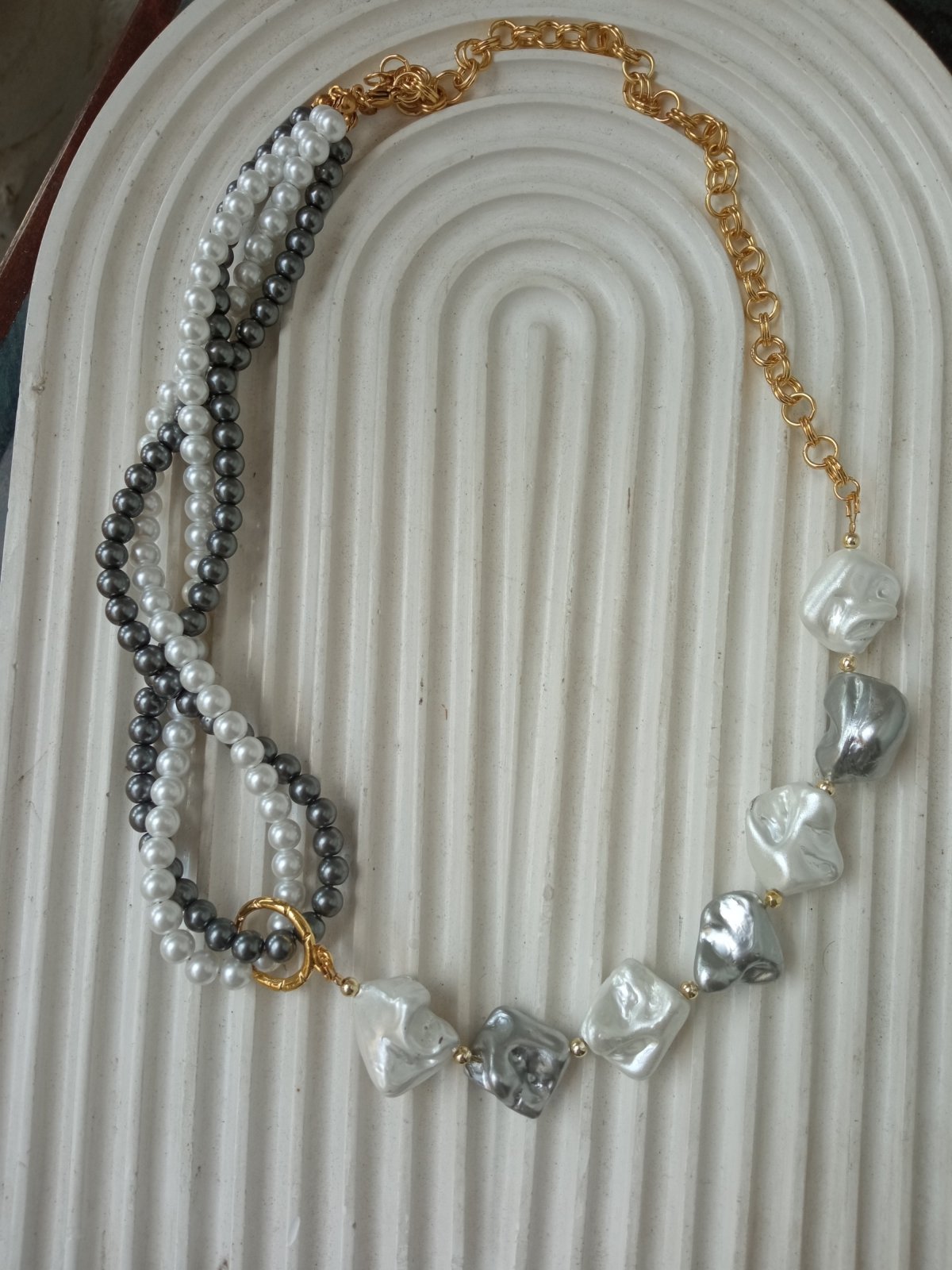 Unique Shell pearl necklace with Chinese gold spacers and gold plated chain Necklace length is 55 cm