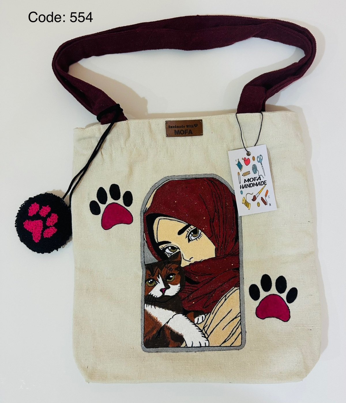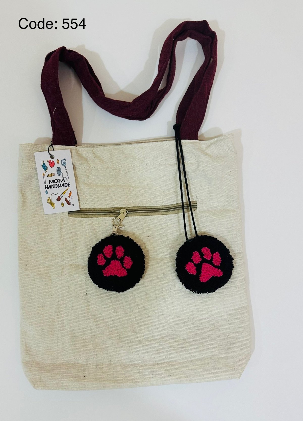 Fabric Tote bag, size 35*40 with a belt made of the same type of fabric ,lined with fabric on the inside ,and with internal pockets.