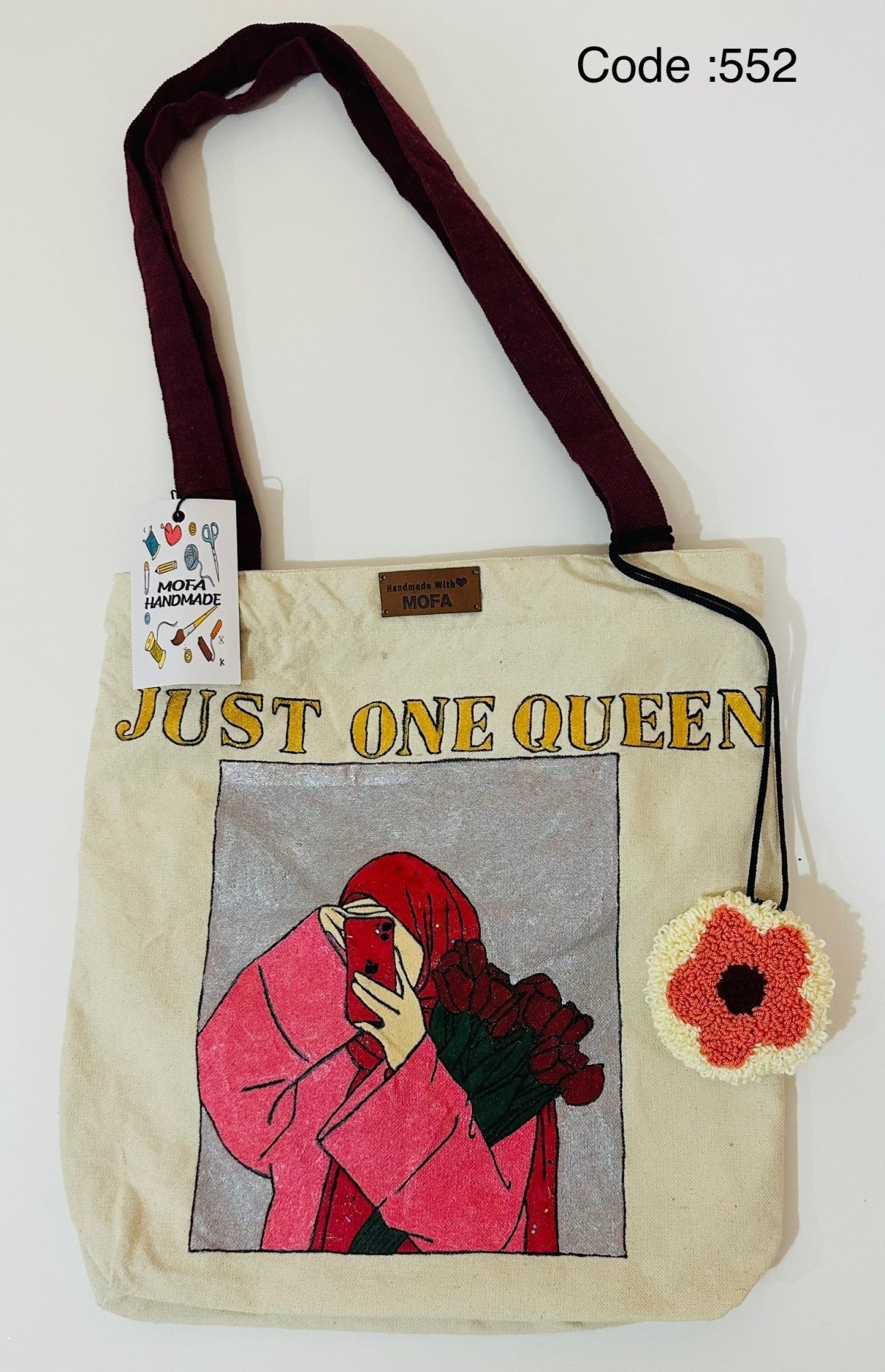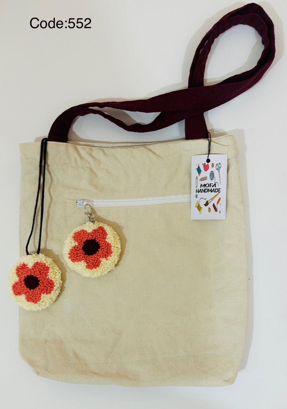 Fabric Tote bag , size 35*40, with a belt made of the same type of fabric, lined with fabric on the inside, and with internal pockets.
