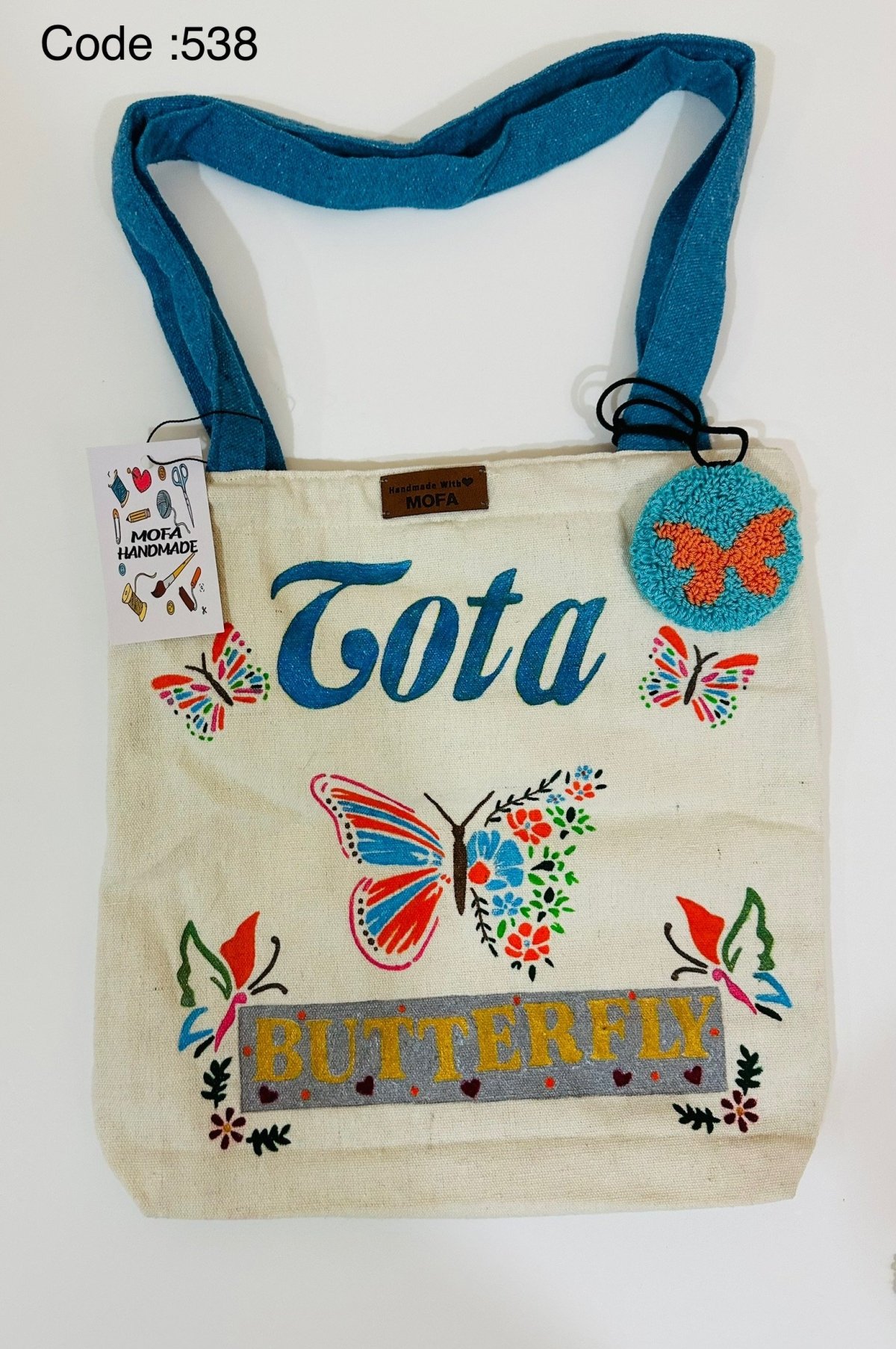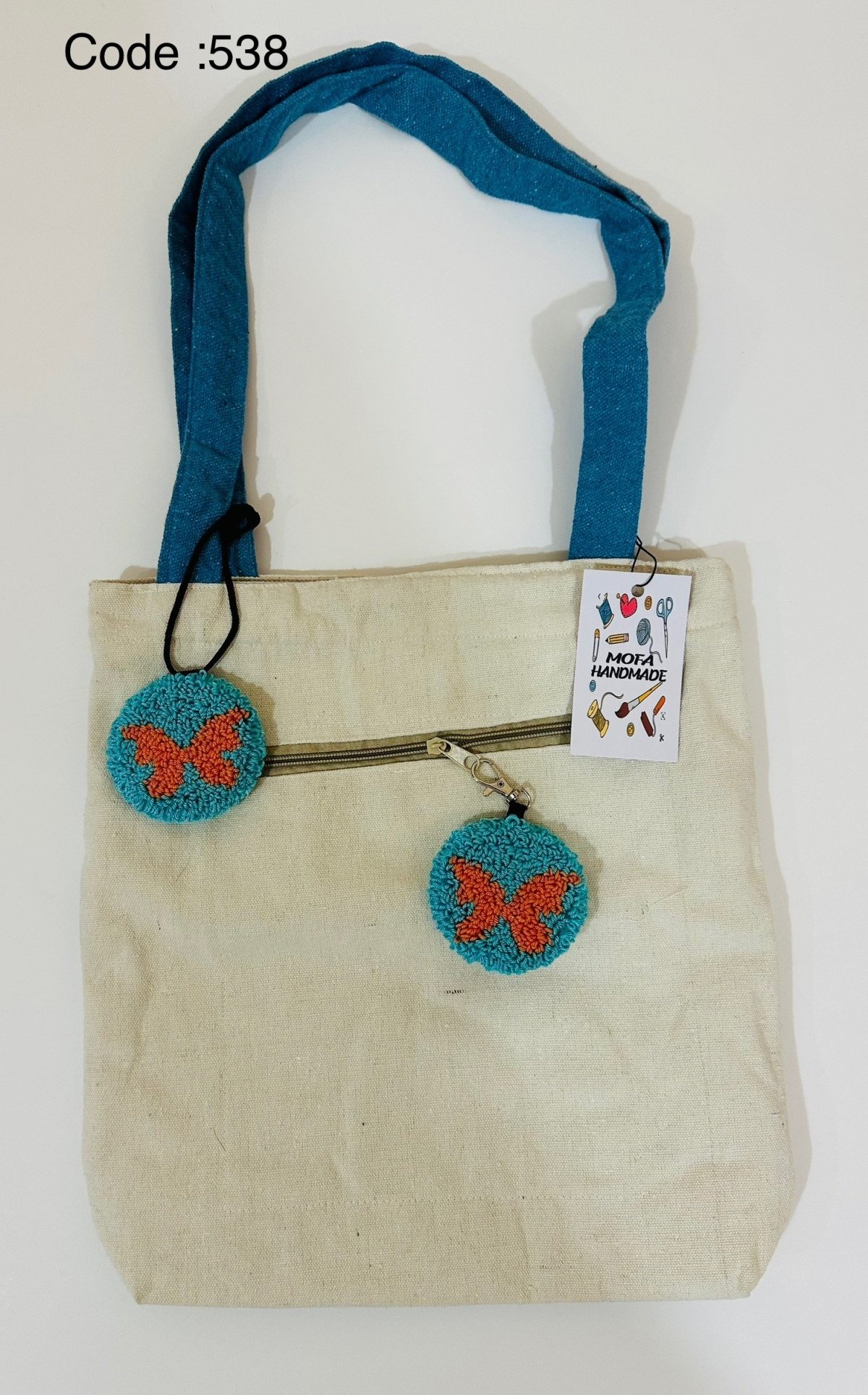 Fabric Tote bag , size 35*40, with a belt made of the same type of fabric, lined with fabric on the inside, and with internal pockets.