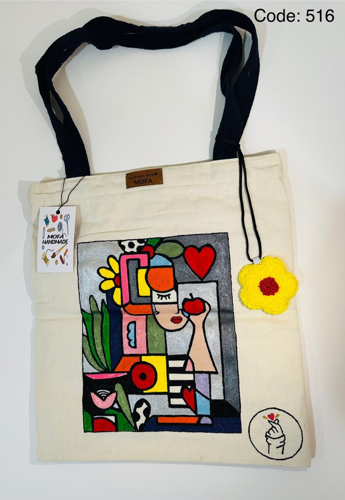 Fabric Tote Bag, size 35*40 , with a belt made of the same type of fabric, lined with fabric on the inside, and with internal pockets.