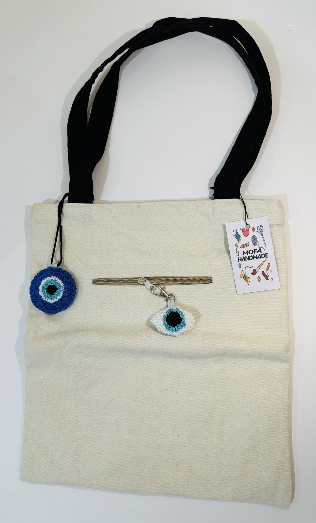 Fabric Tote Bag, size 35*40 , with a belt made of the same type of fabric, lined with fabric on the inside, and with internal pockets.