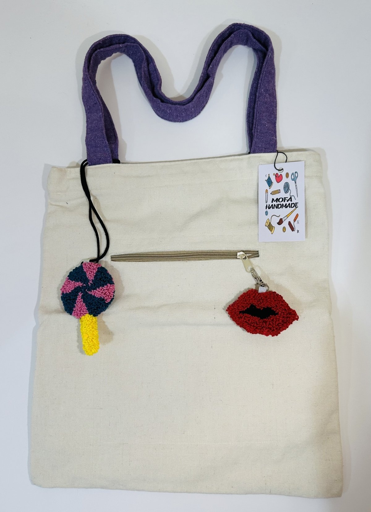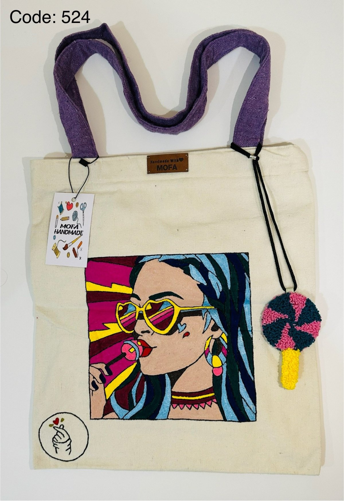 Fabric Tote Bag, size 35*40 , with a belt made of the same type of fabric, lined with fabric on the inside, and with internal pockets.