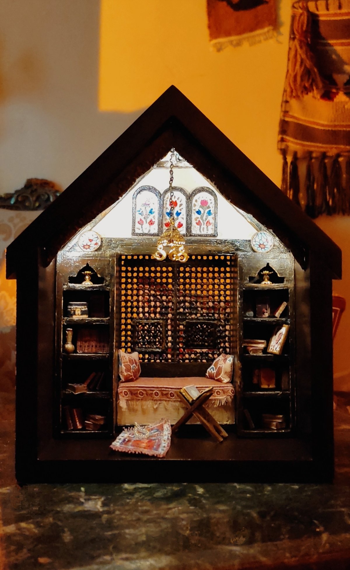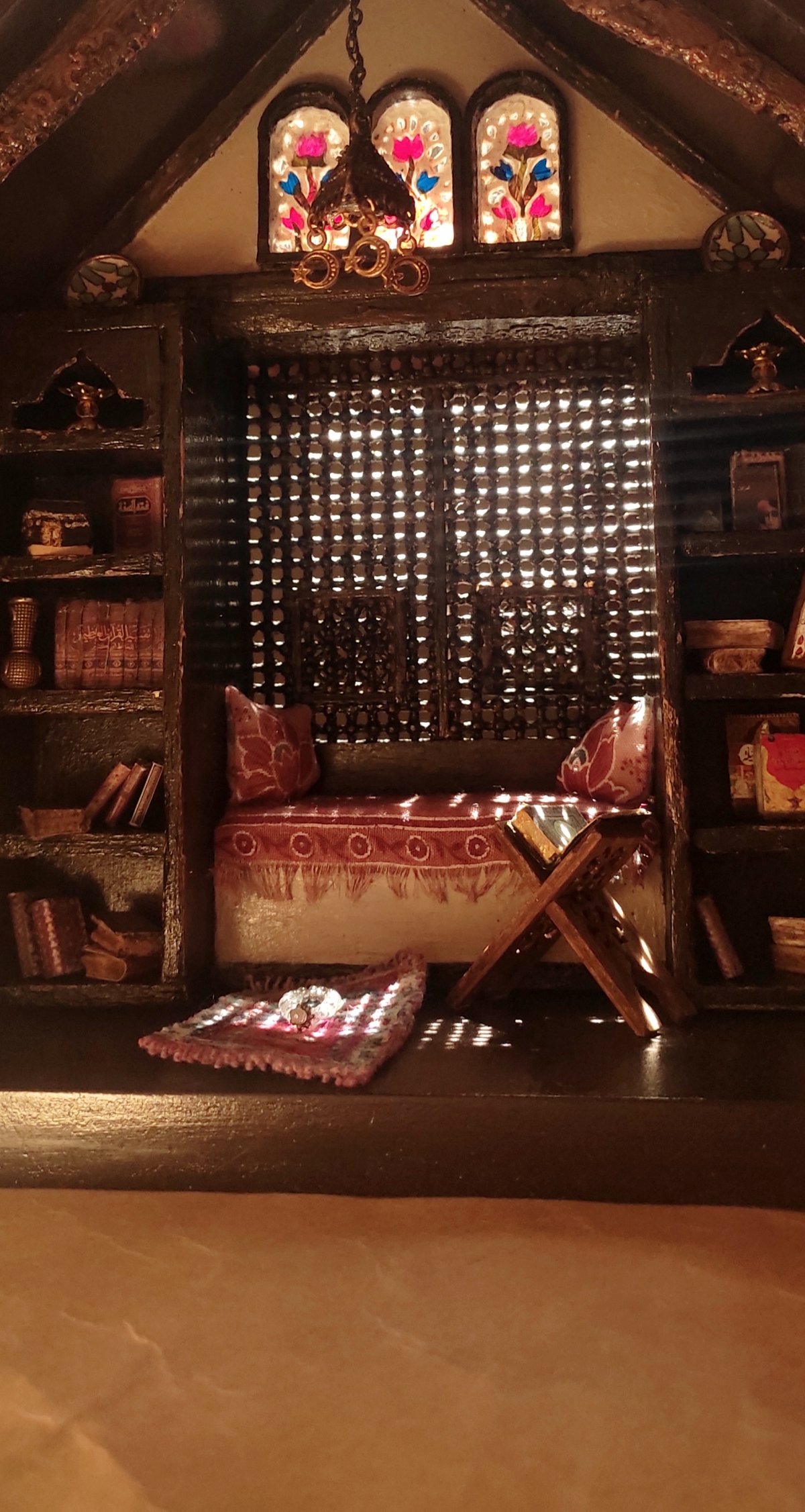 The mashrabiya design is unique, completely handcrafted from wood and various materials