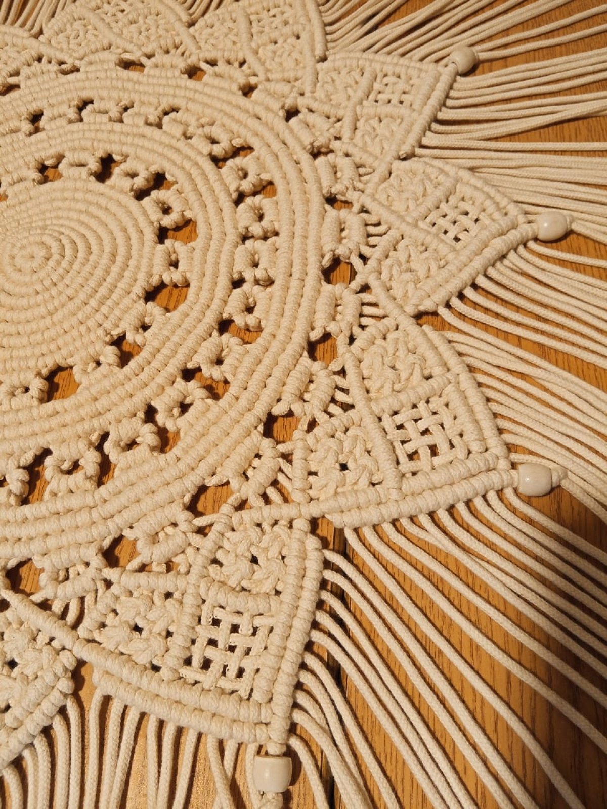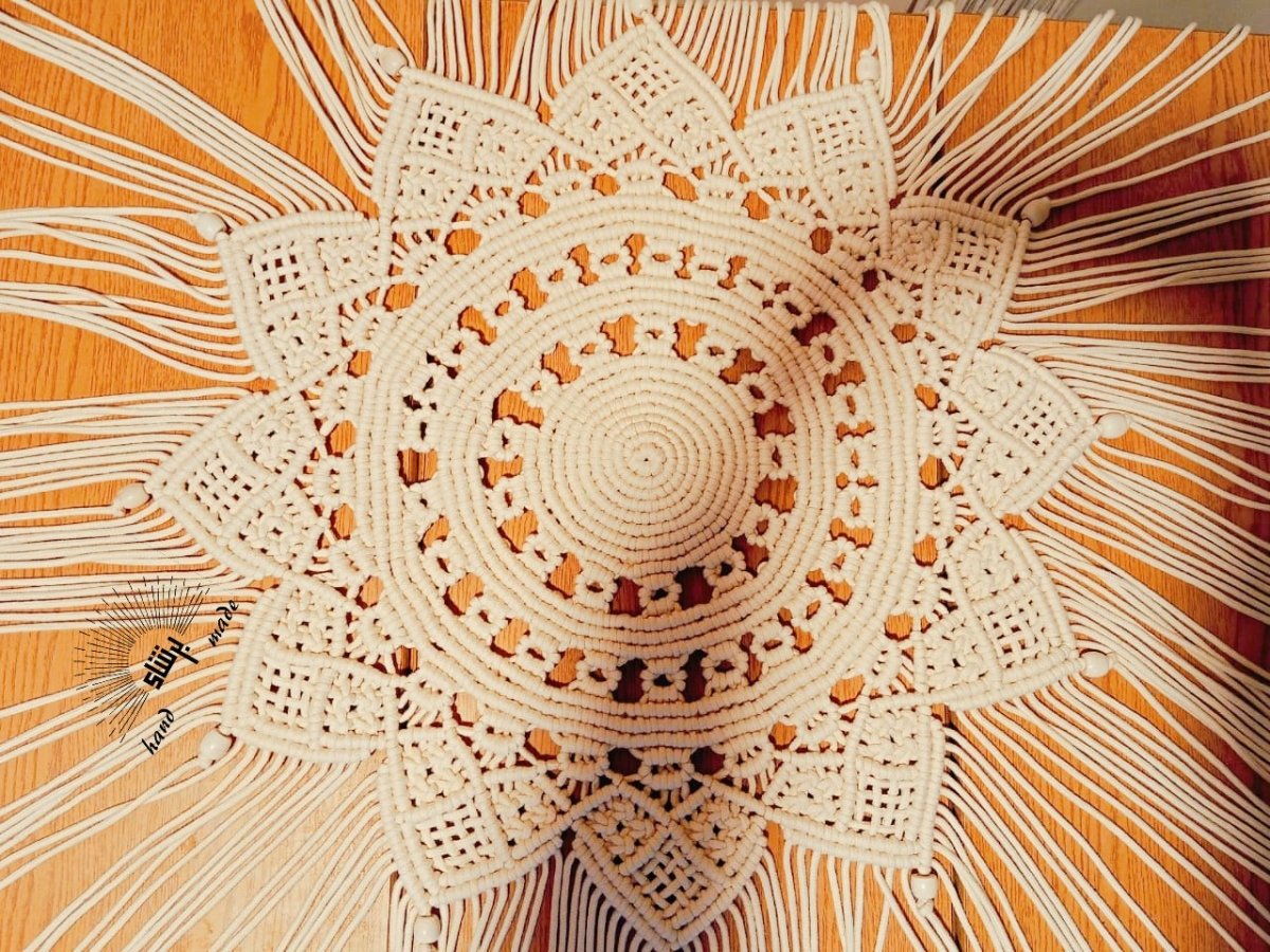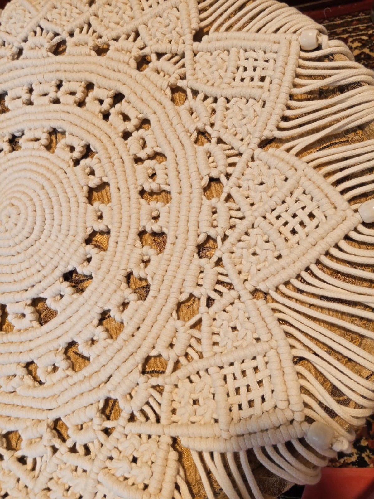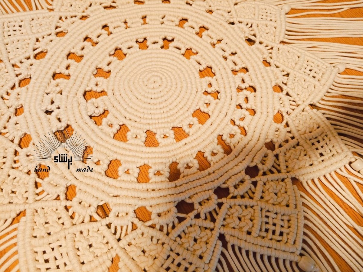 Circular macrame tablecloth Diameter including fringe 2 metres Diameter of workpiece. 70 cm Cotton, the finest type 100 cotton
