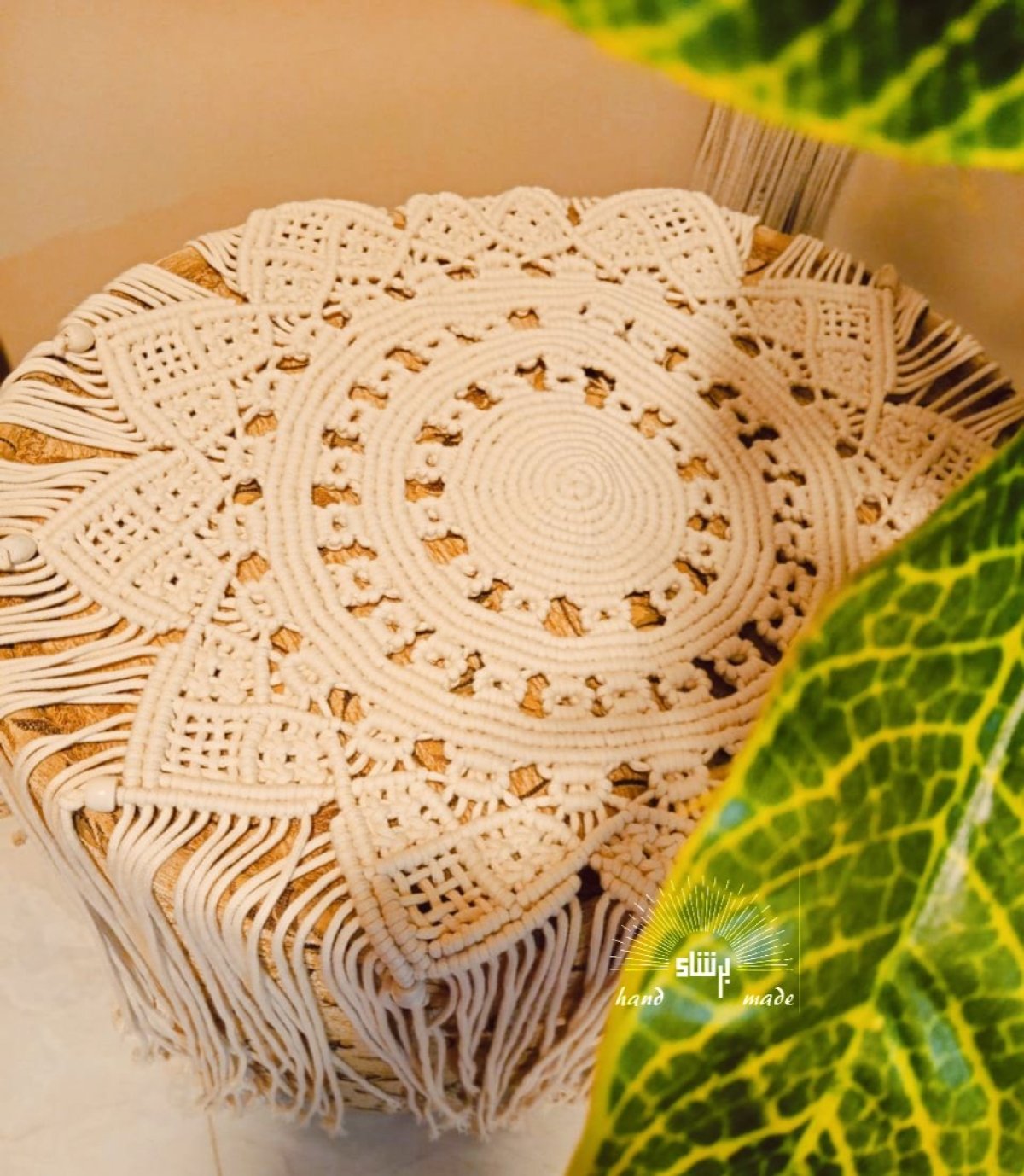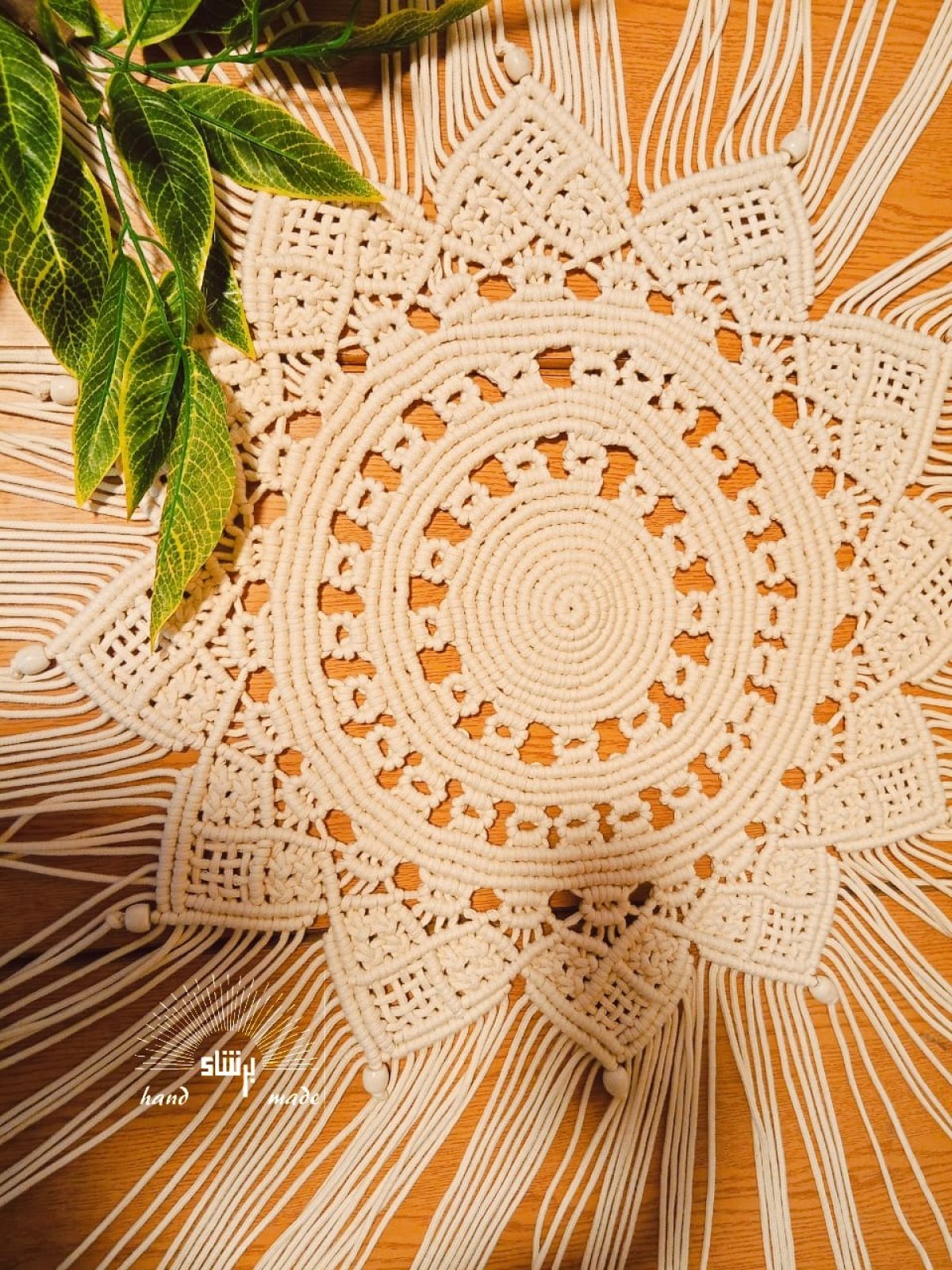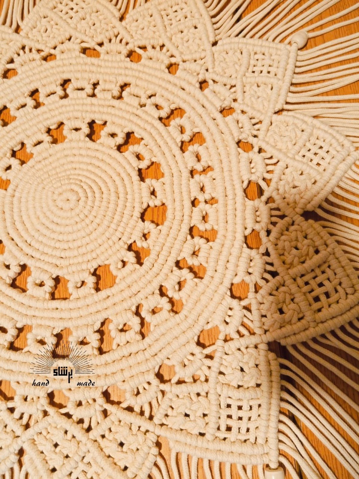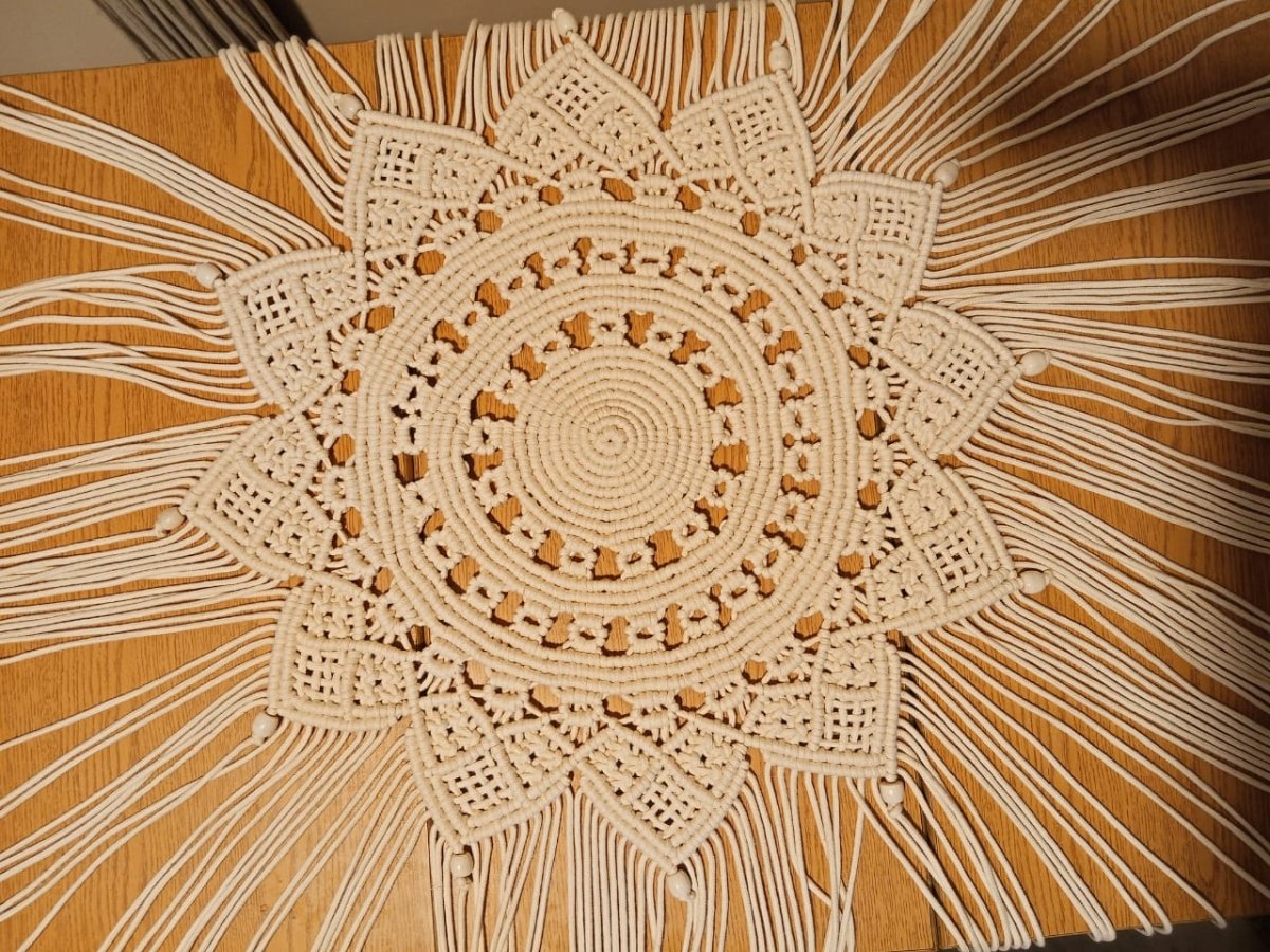 Circular macrame tablecloth Diameter including fringe 2 metres Diameter of workpiece. 70 cm Cotton, the finest type 100 cotton