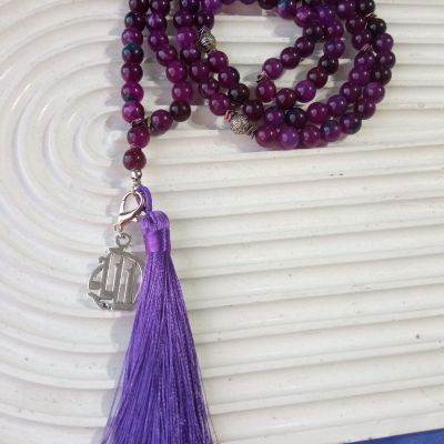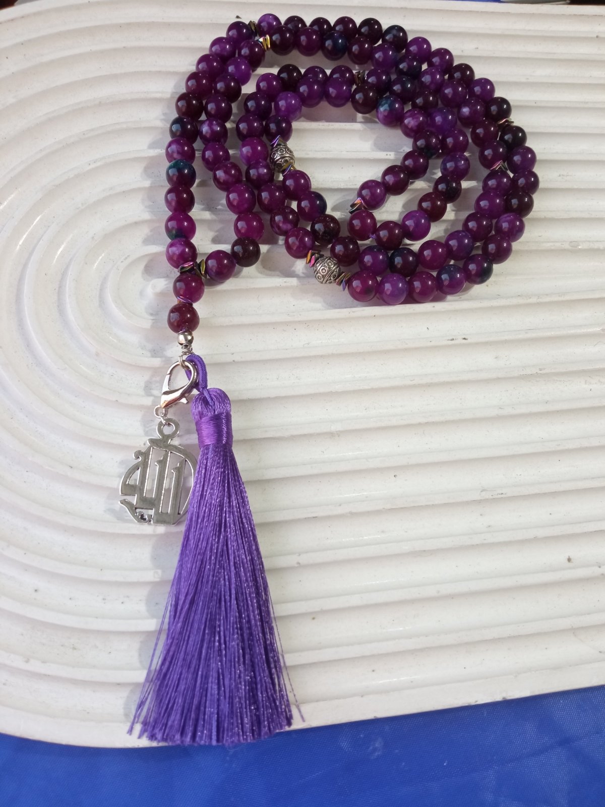 Agate rosary,99 beads, size 8, with Chinese gold spacers and silk tassel You can wear it as a necklace