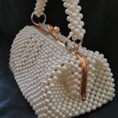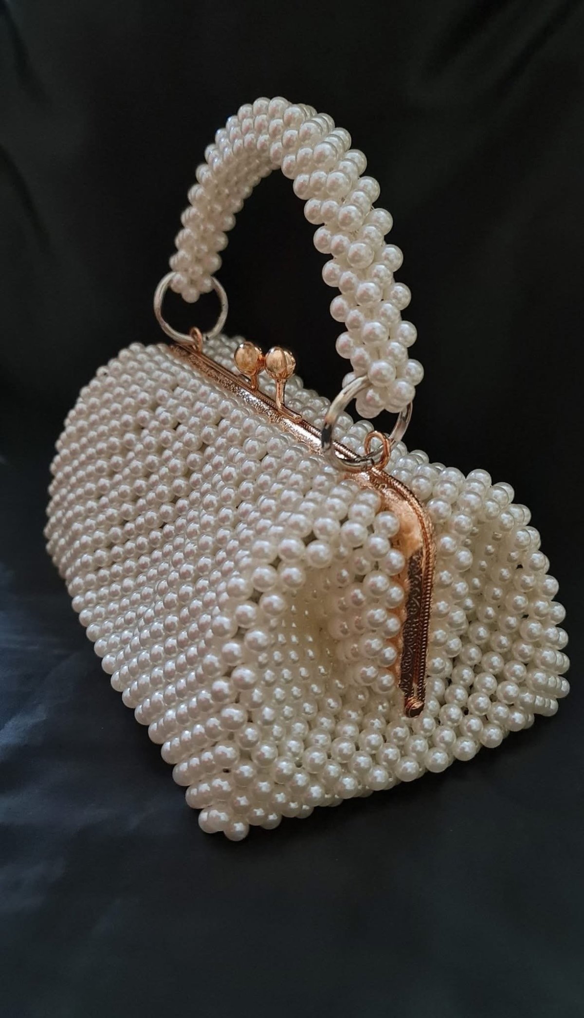 Beaded bag and shoulder strap with beads of the same type. All colors are available.