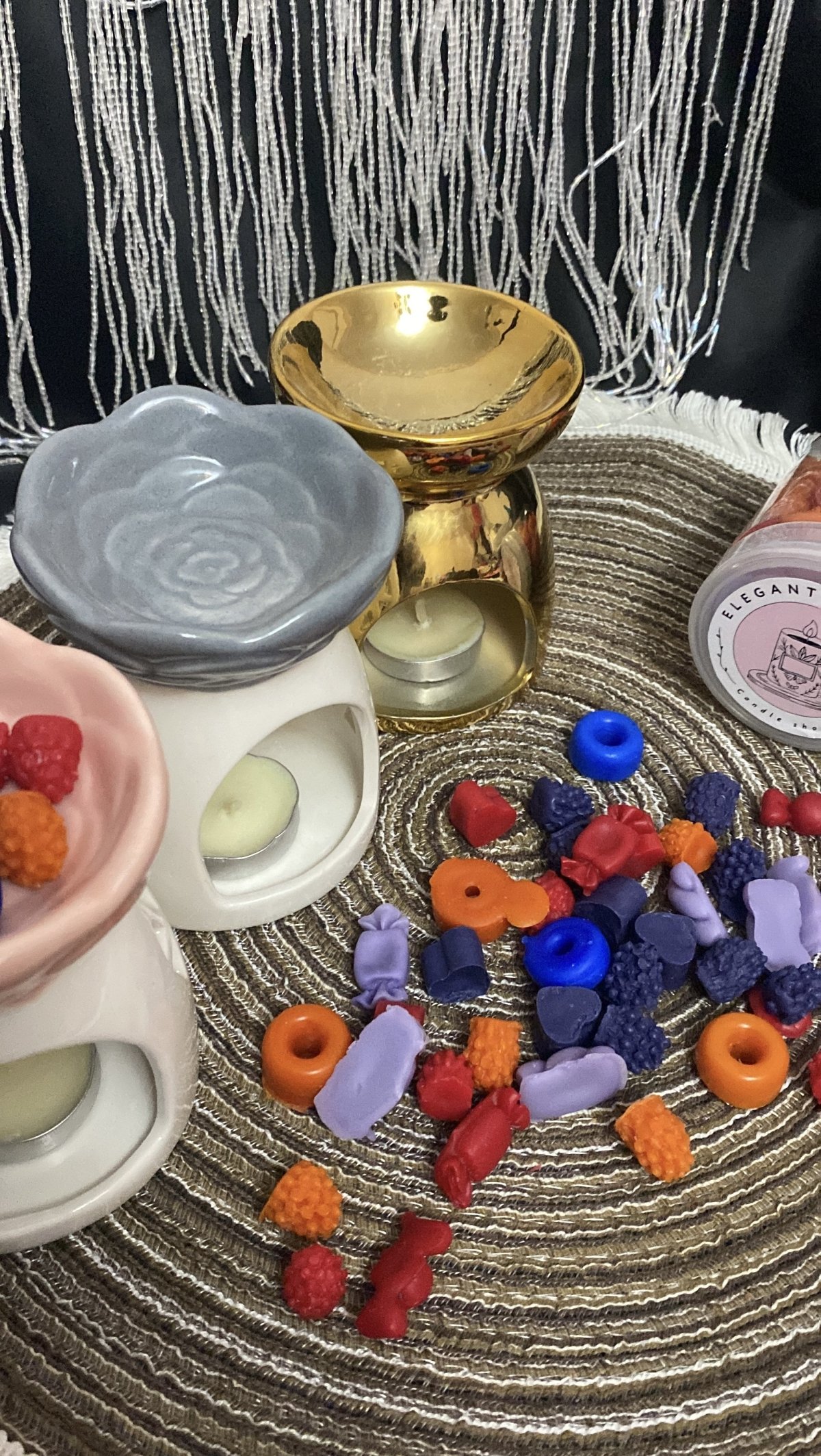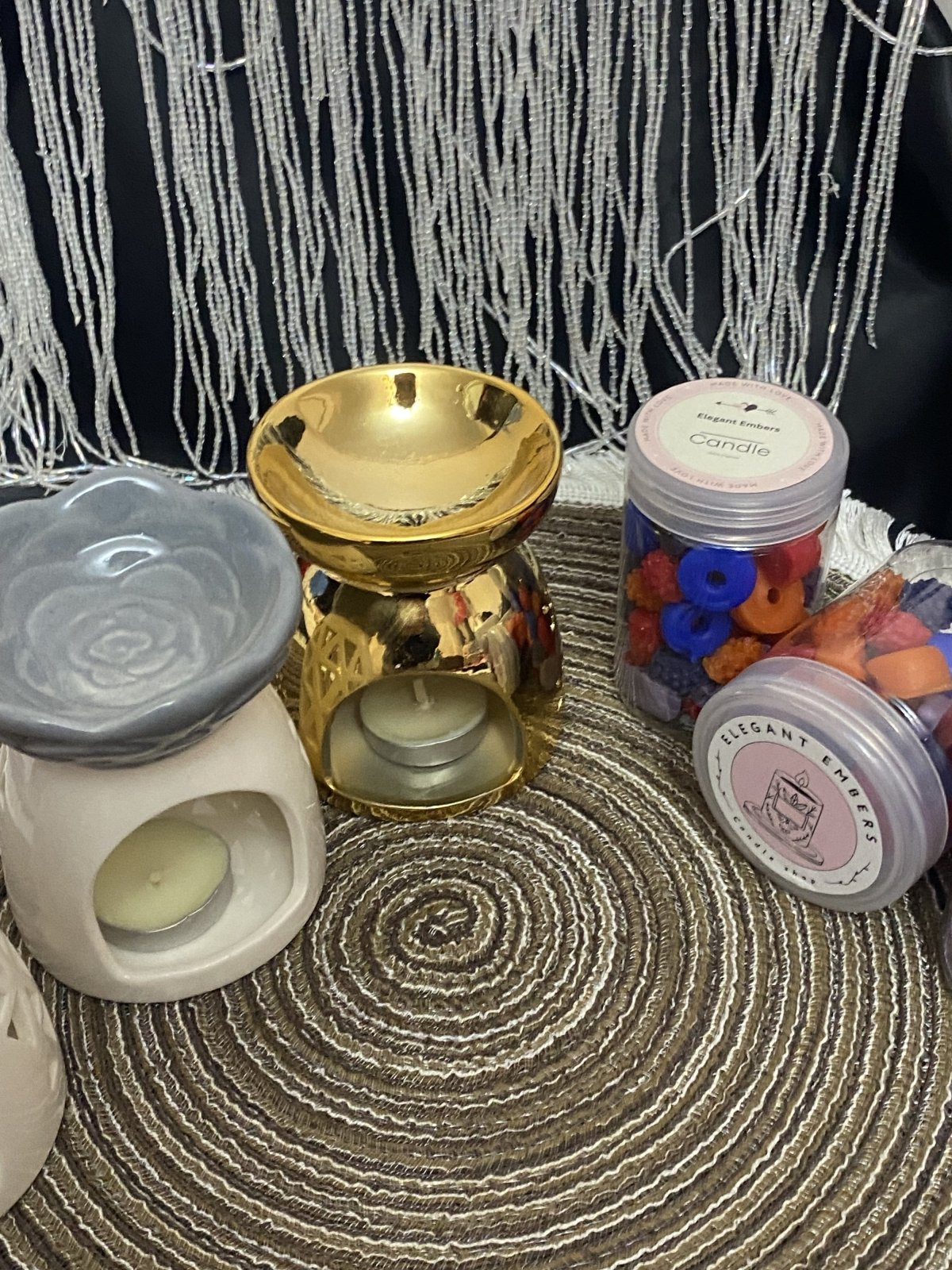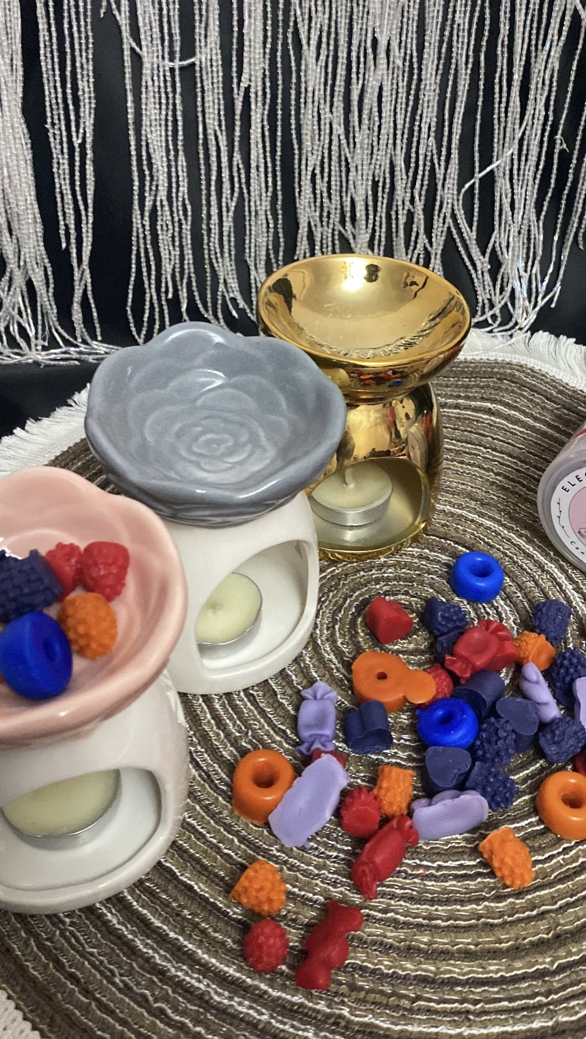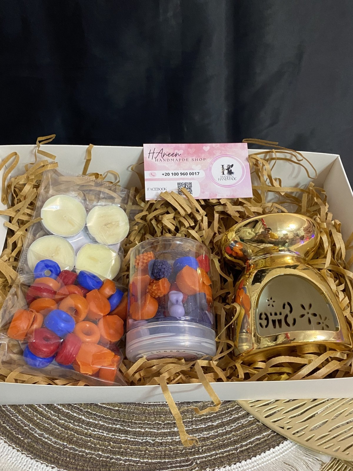 Porcelain incense burner set consisting of (porcelain incense burner + 2 tea light candles + 150 gram jar of fondant + 30 gram bag of fondant in different shapes)
