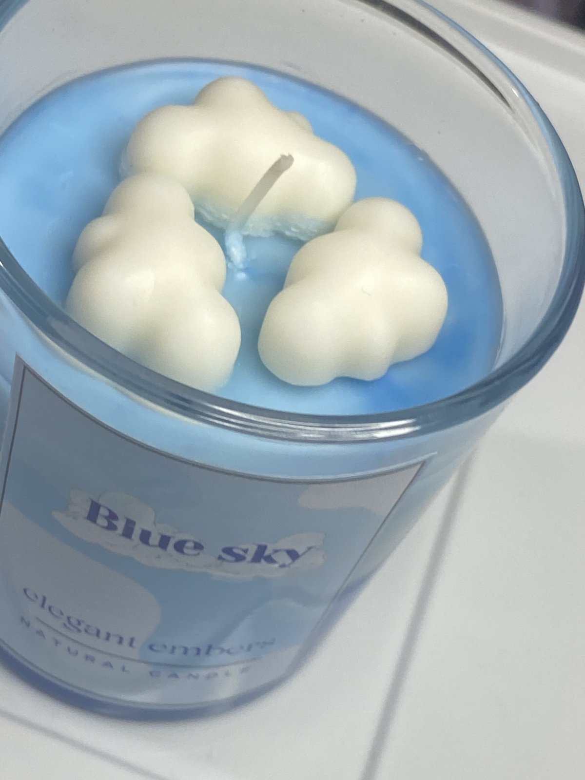 A distinctive candle with a cloud theme, white color, and a sea breeze scent. Weight: 150 grams.