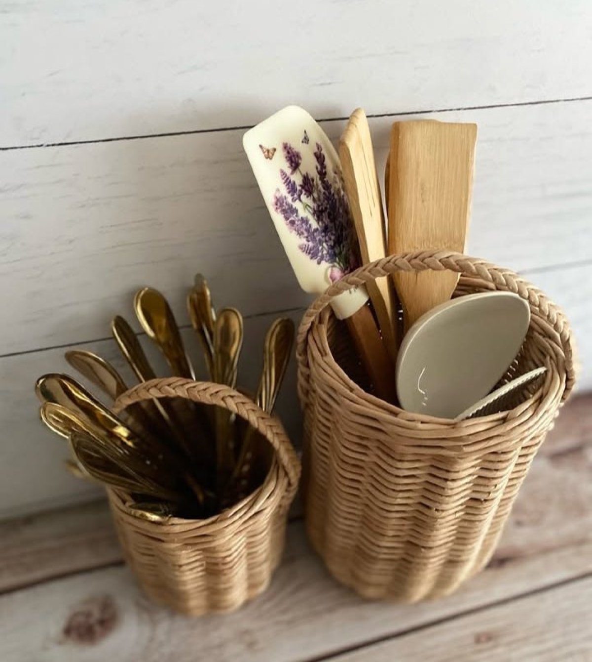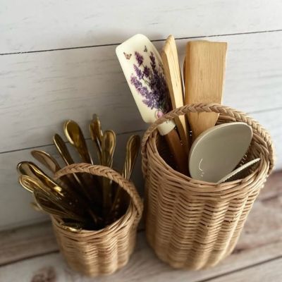A set of organizers for spoons and kitchen materials, hand-woven from dry plant leaves of high strength, durability and endurance.