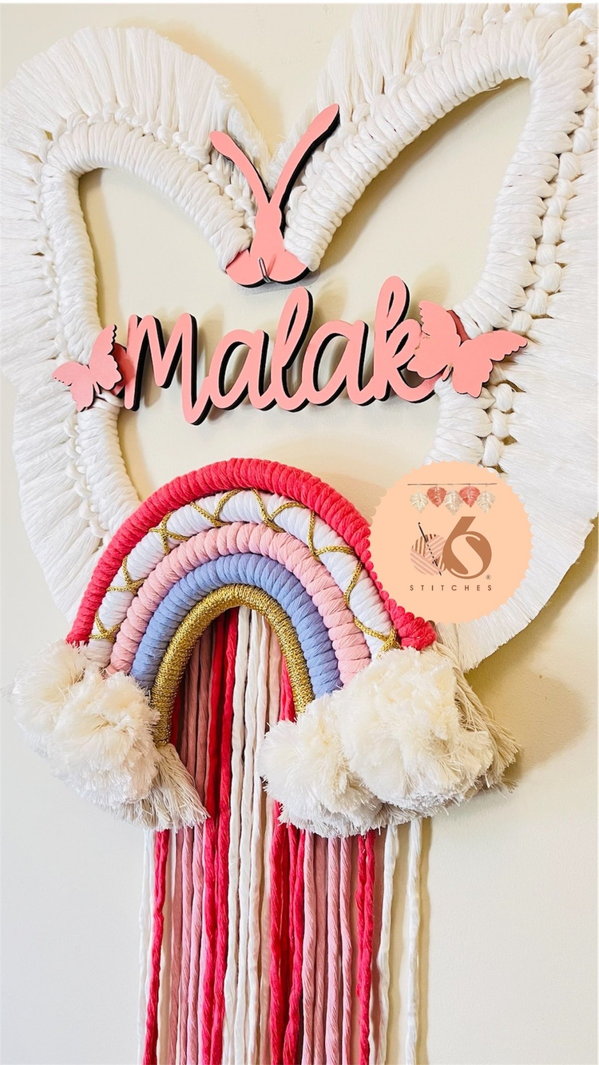 Handmade macrame cloud with name, size 50cm*100cm