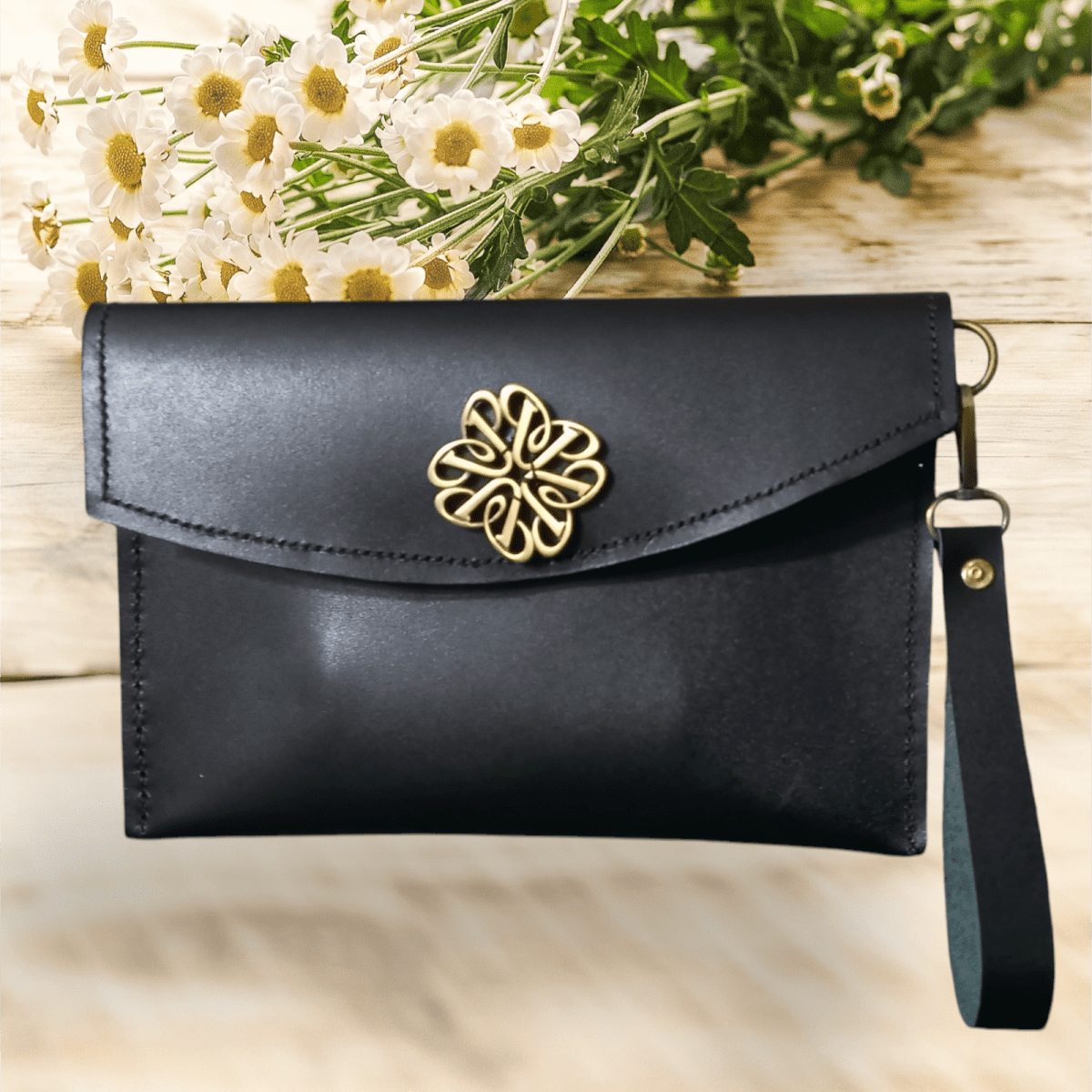 Women's genuine leather clutch blak Red Chain strap Dimensions 22 x 16