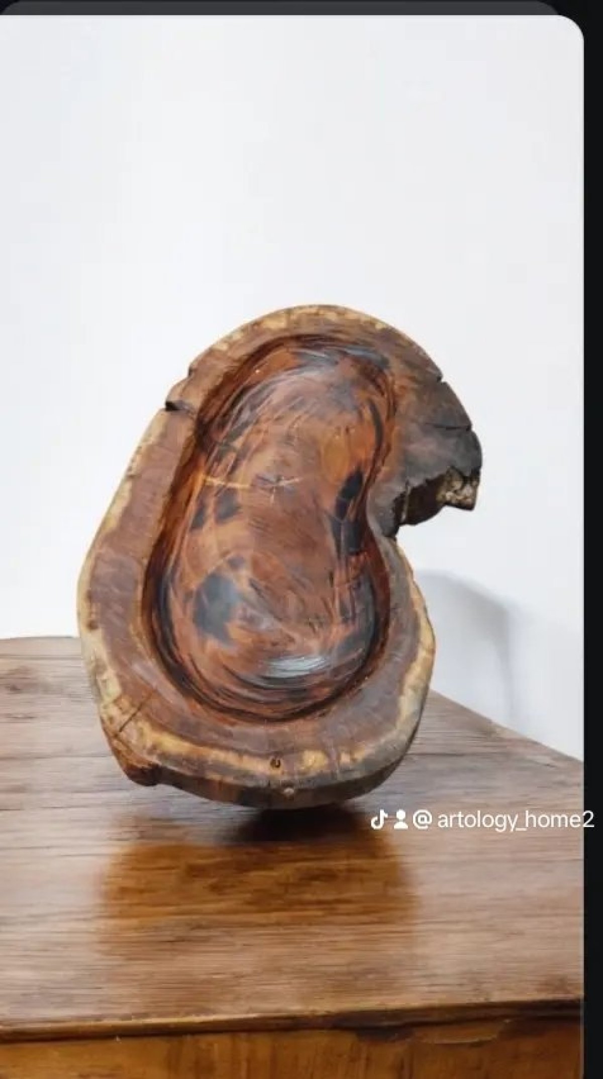 Hand-carved wooden bowl made of natural tree wood treated against termites, insects and moisture.