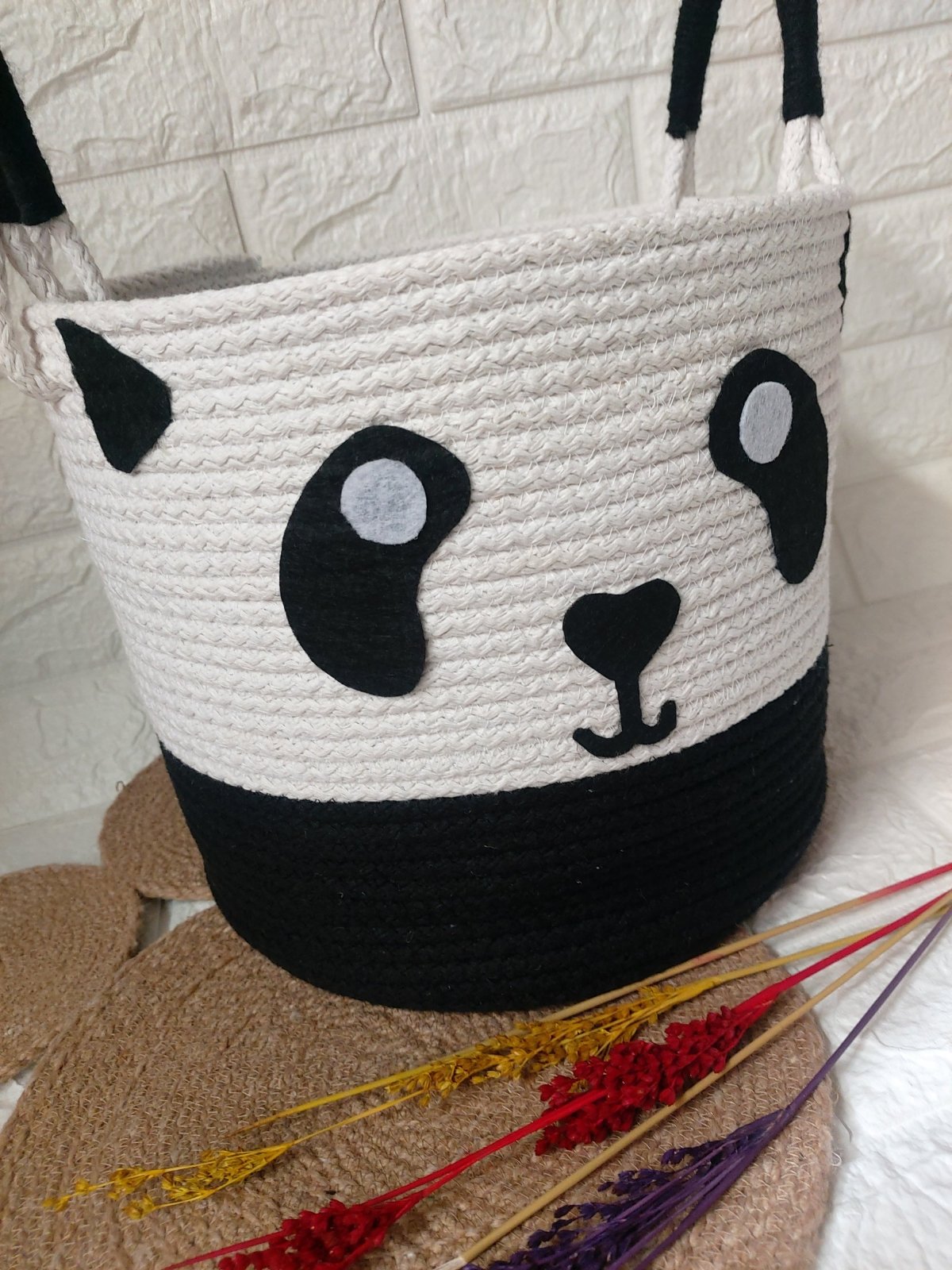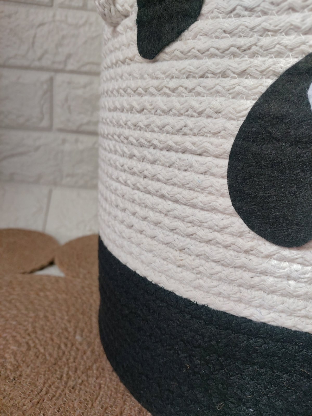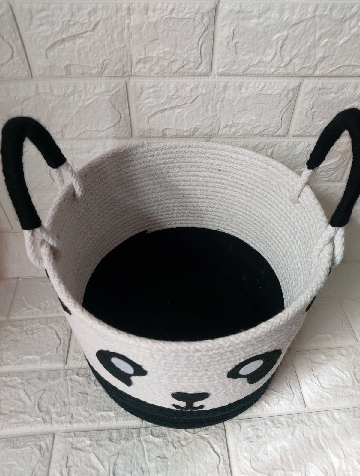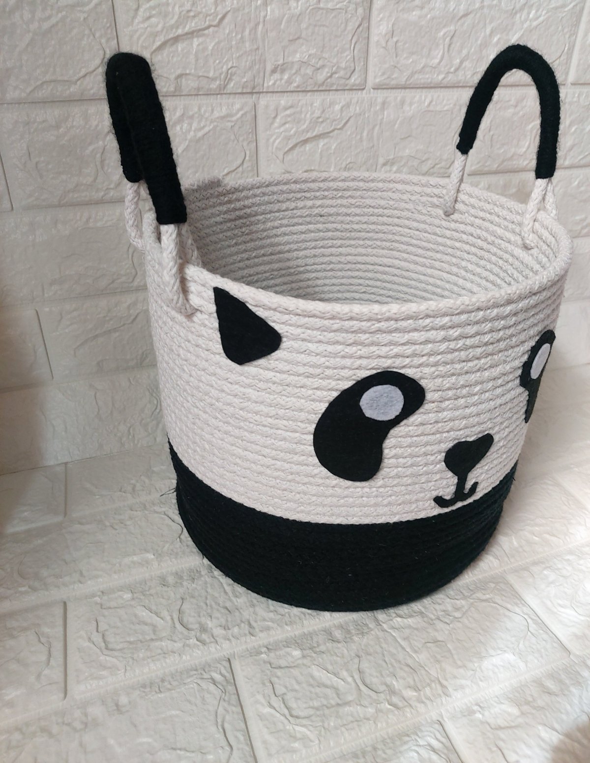 Baby room organizer basket panda shape Made of cordon rope Multipurpose Dimensions Height 23 cm Diameter 27 cm