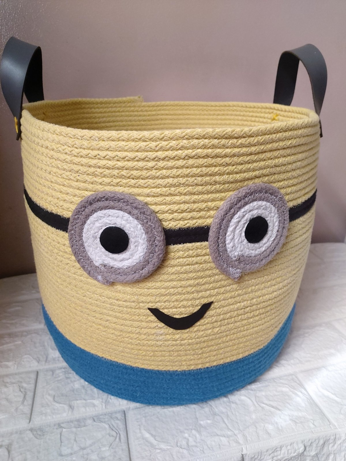 Baby room organizer basket minion shape Made of cordon rope Multipurpose Dimension Diameter 35 cm Height 30 cm