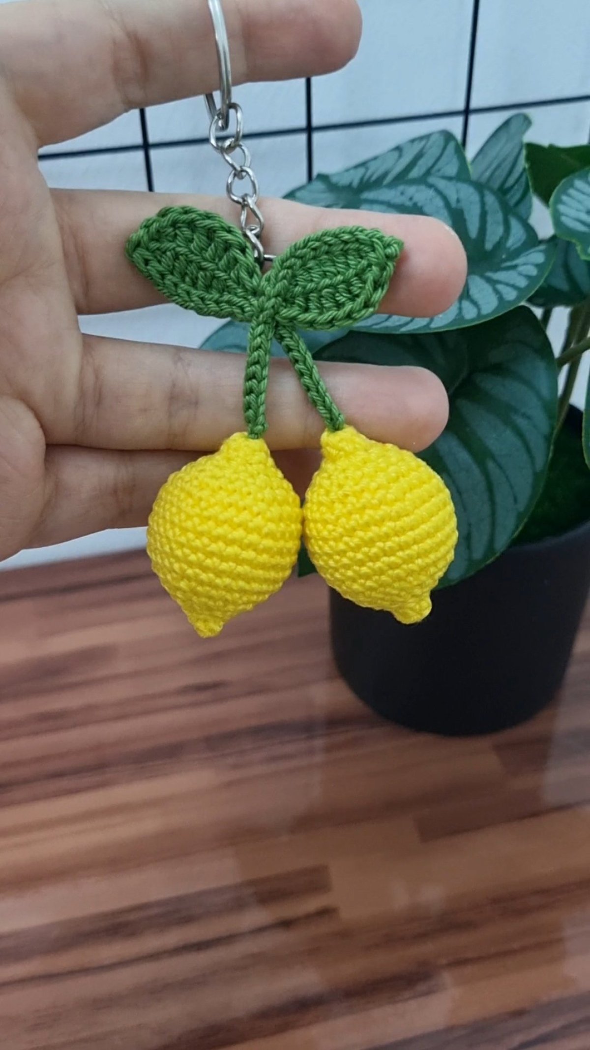 Stay fresh and stylish with this handmade crochet lemon keychain Beautifully crafted to resemble two bright yellow lemons with two cute green leaves, this piece adds a fun and fruity vibe to your keys, bag, or even your car mirror. Made with soft yarn and a sturdy metal ring for easy attachment