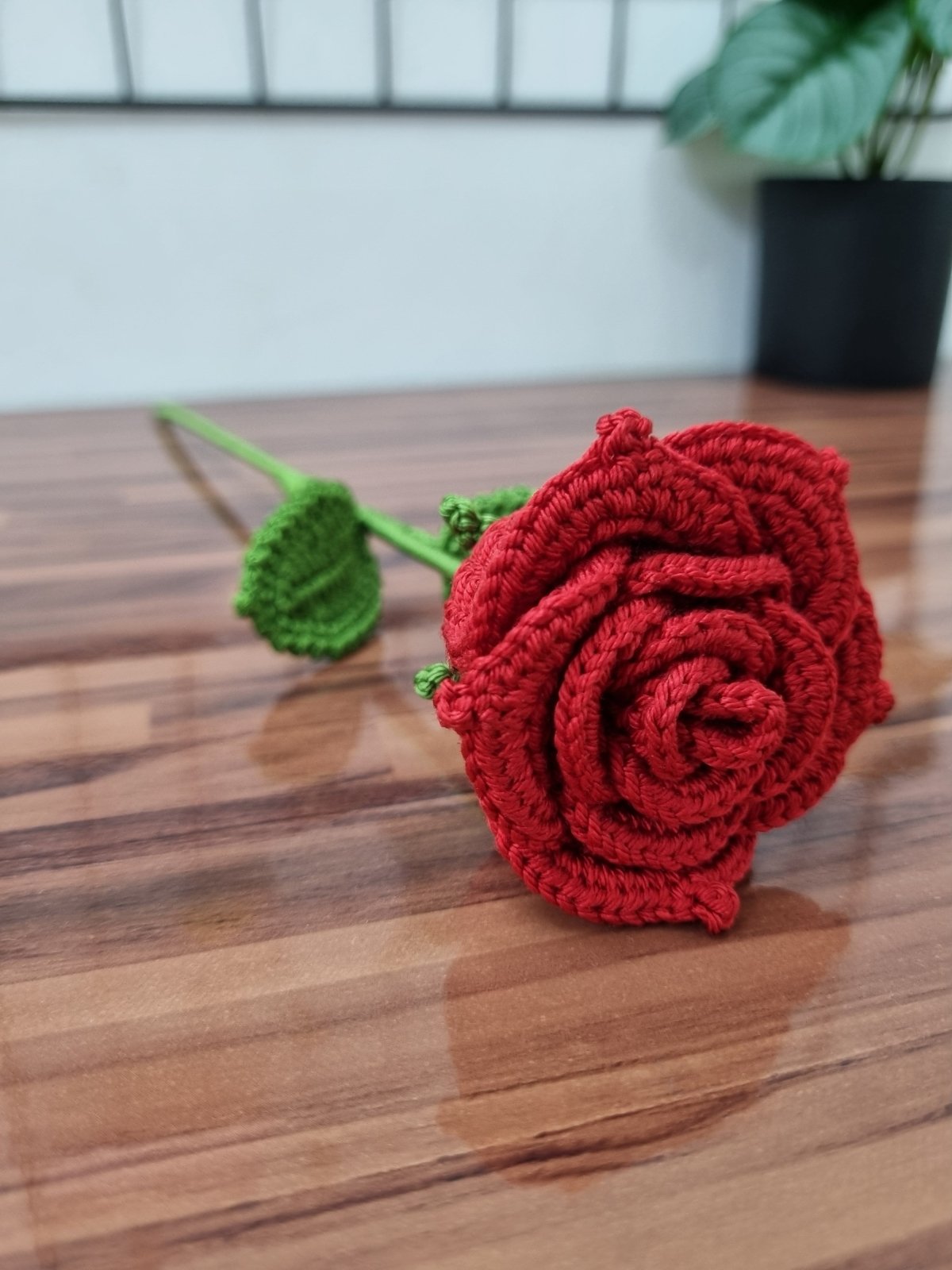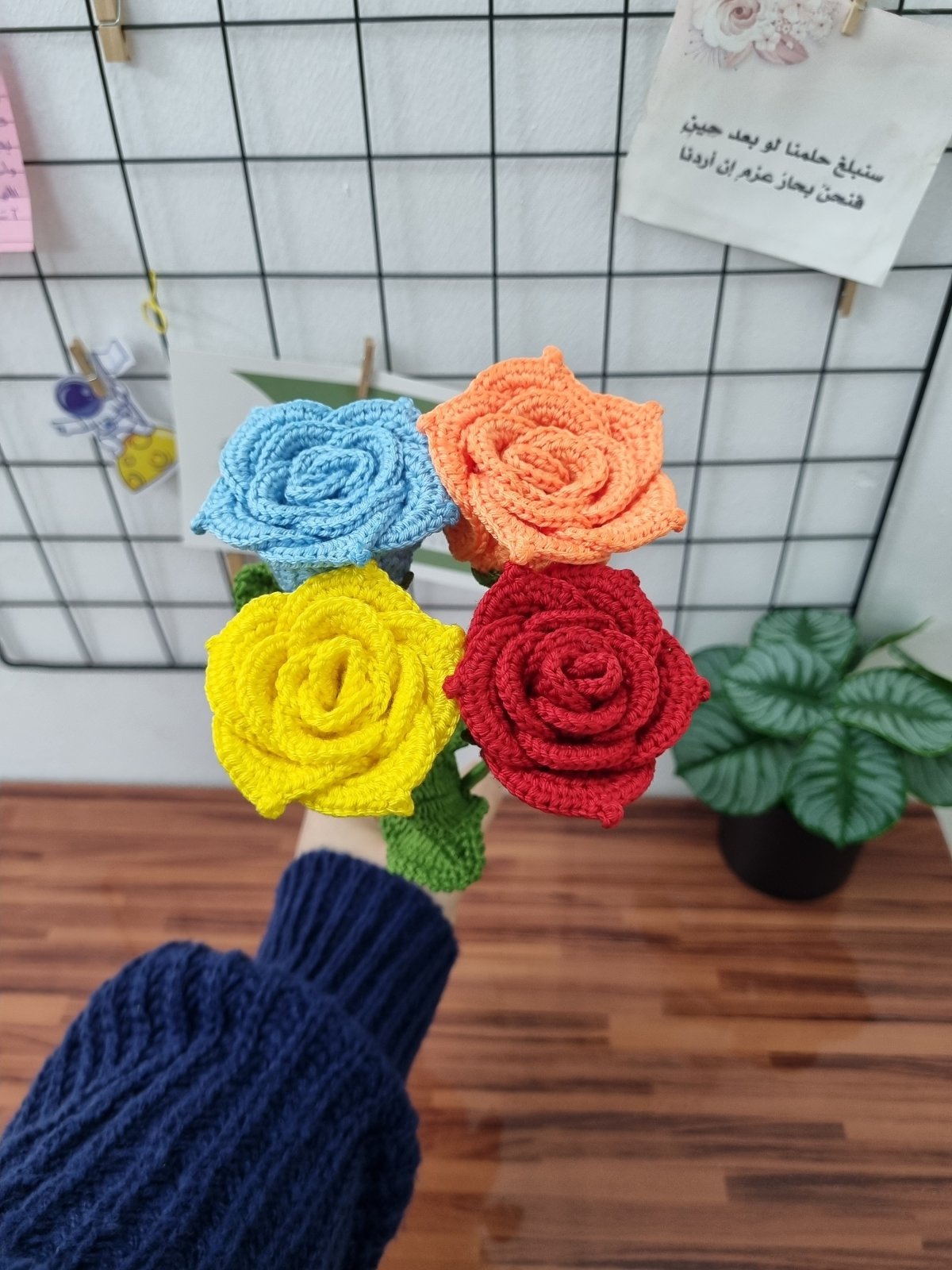 Handmade crochet flower crafted with precision and care to bring a touch of beauty and warmth to any space. made from high-quality yarn. Perfect as a unique gift or a long-lasting decorative piece for your home or office – no wilting, just charm!