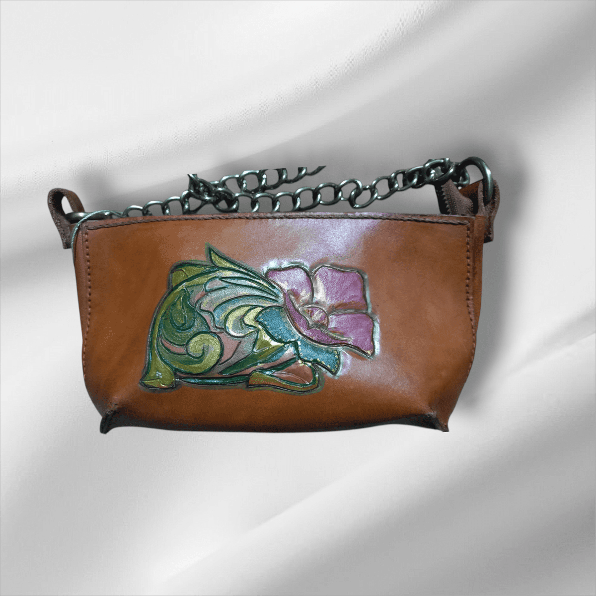 Havana bag for girls Hand drawing and coloring of a rose Chain and leather growers Dimensions 24 x 16