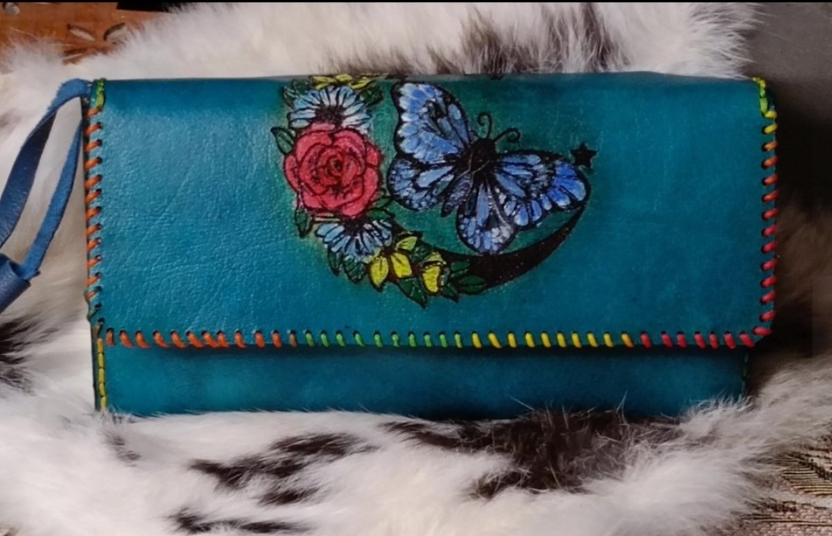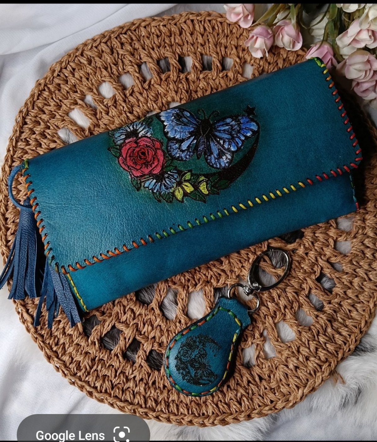 Women's profile, size 18*12, internal zipper, 4 card slots, magnetic lock, natural leather, handmade stitching