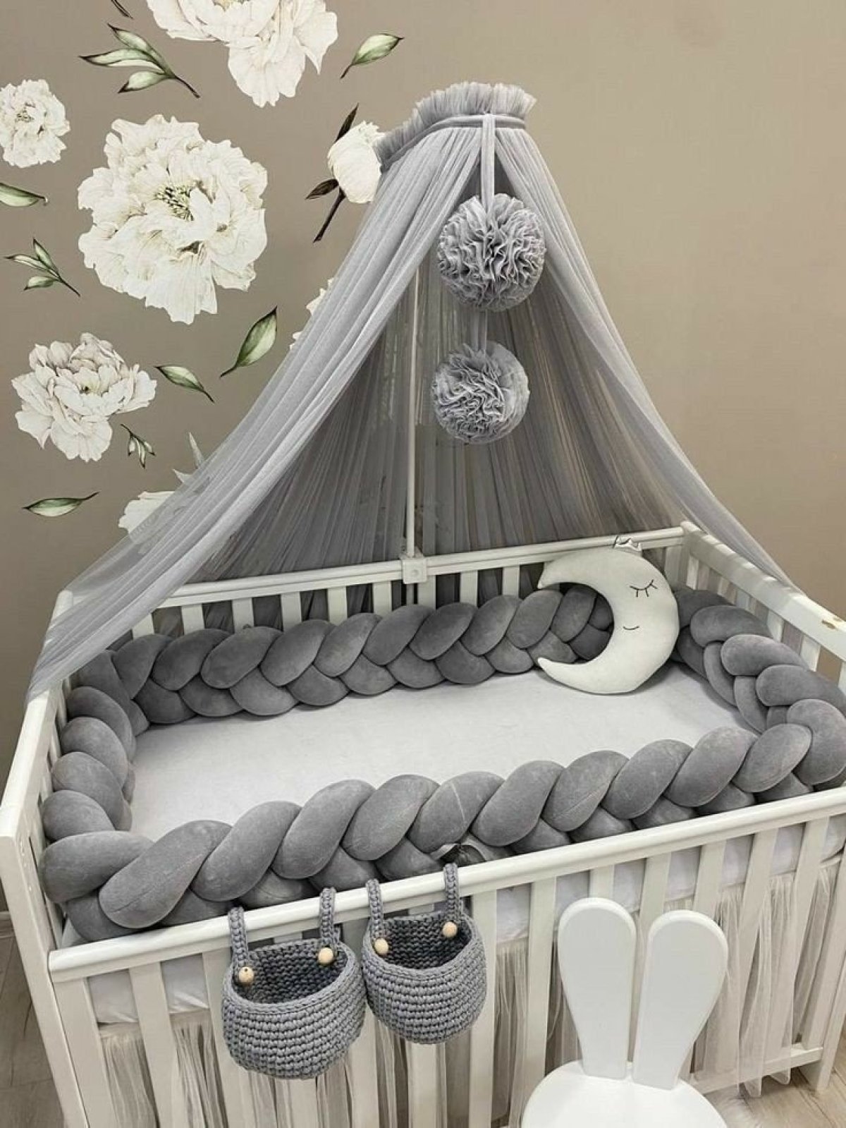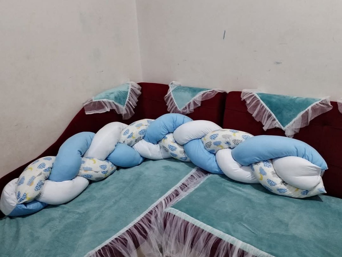 Baby bed sides to protect the baby from shocks and knocks. They are also a nice decoration anywhere in your home. They are made of soft cotton and fiber, very comfortable, and have a delicate and elegant appearance. Their price is amazing.