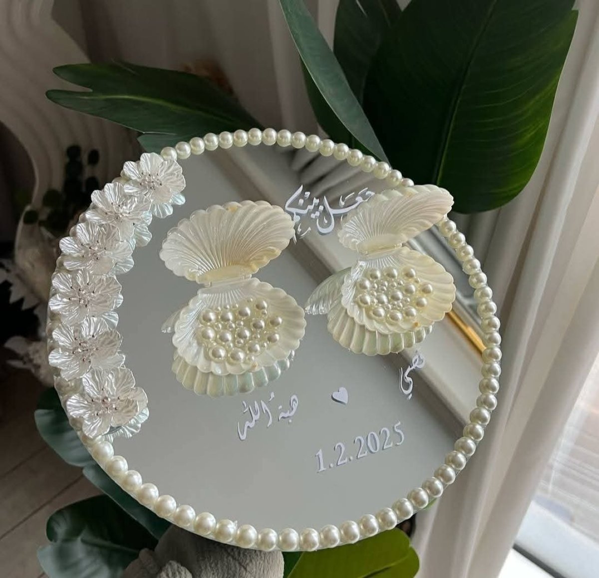 The bride's mirror and fingerprint with the design you like and excellent materials, a delicate and elegant design for the most beautiful bride. The most important thing is always your joy and the precision of the details of your day that we will never forget.