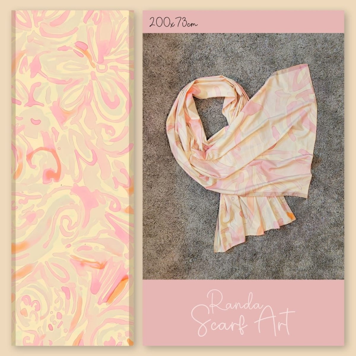 A scarf with modern and artistic designs, made of soft and velvety CY crepe cotton, suitable for all seasons, size 200 x 73 cm