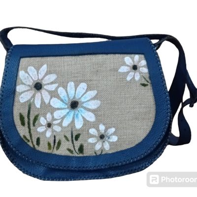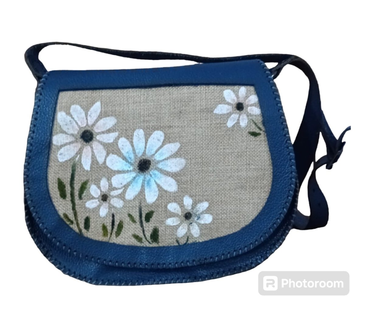 blue handmade leather bag