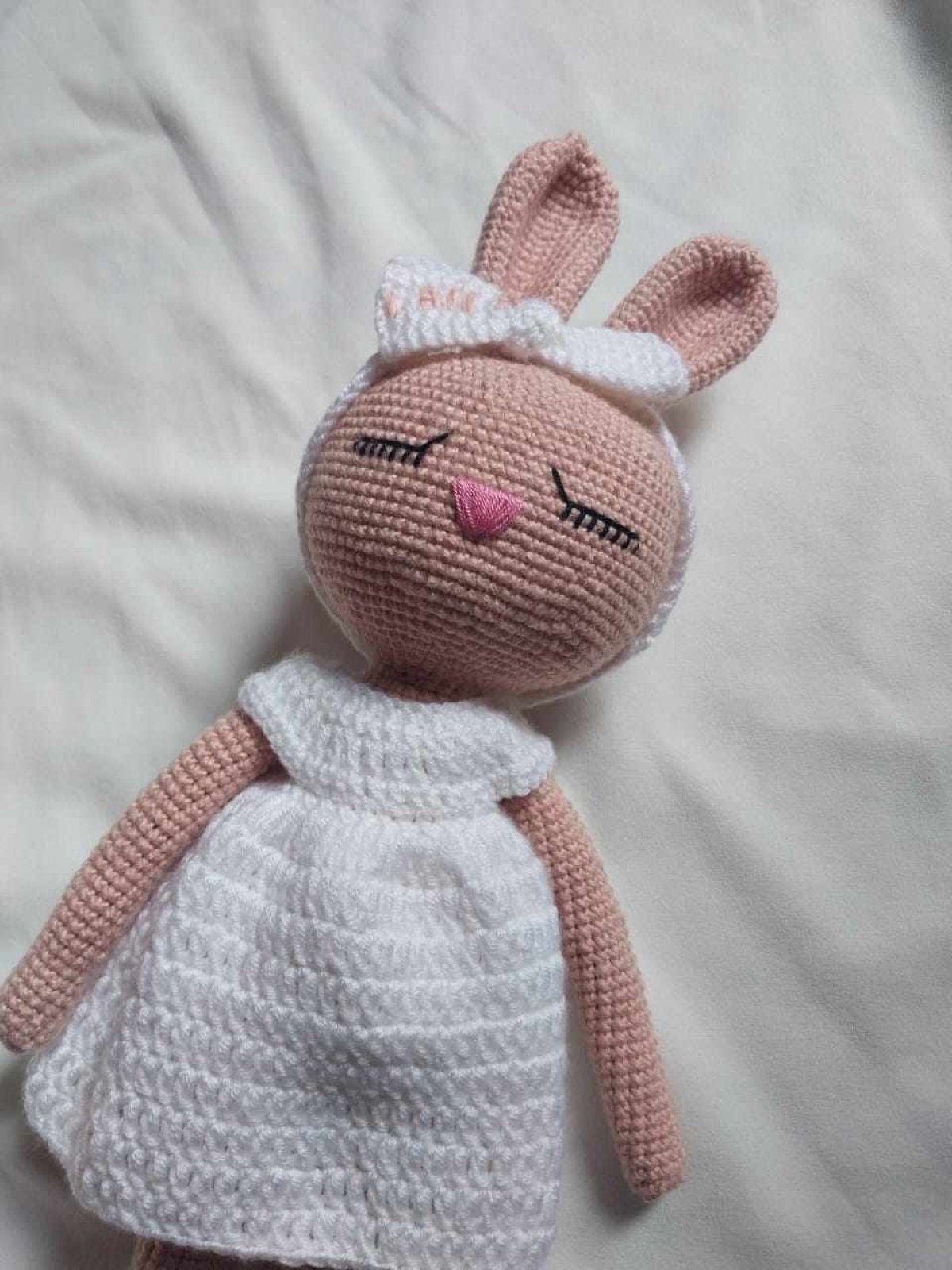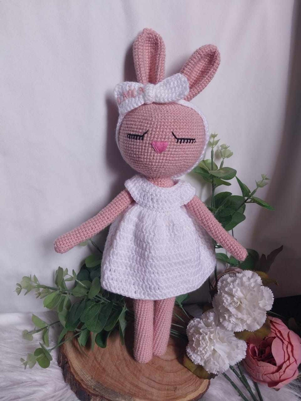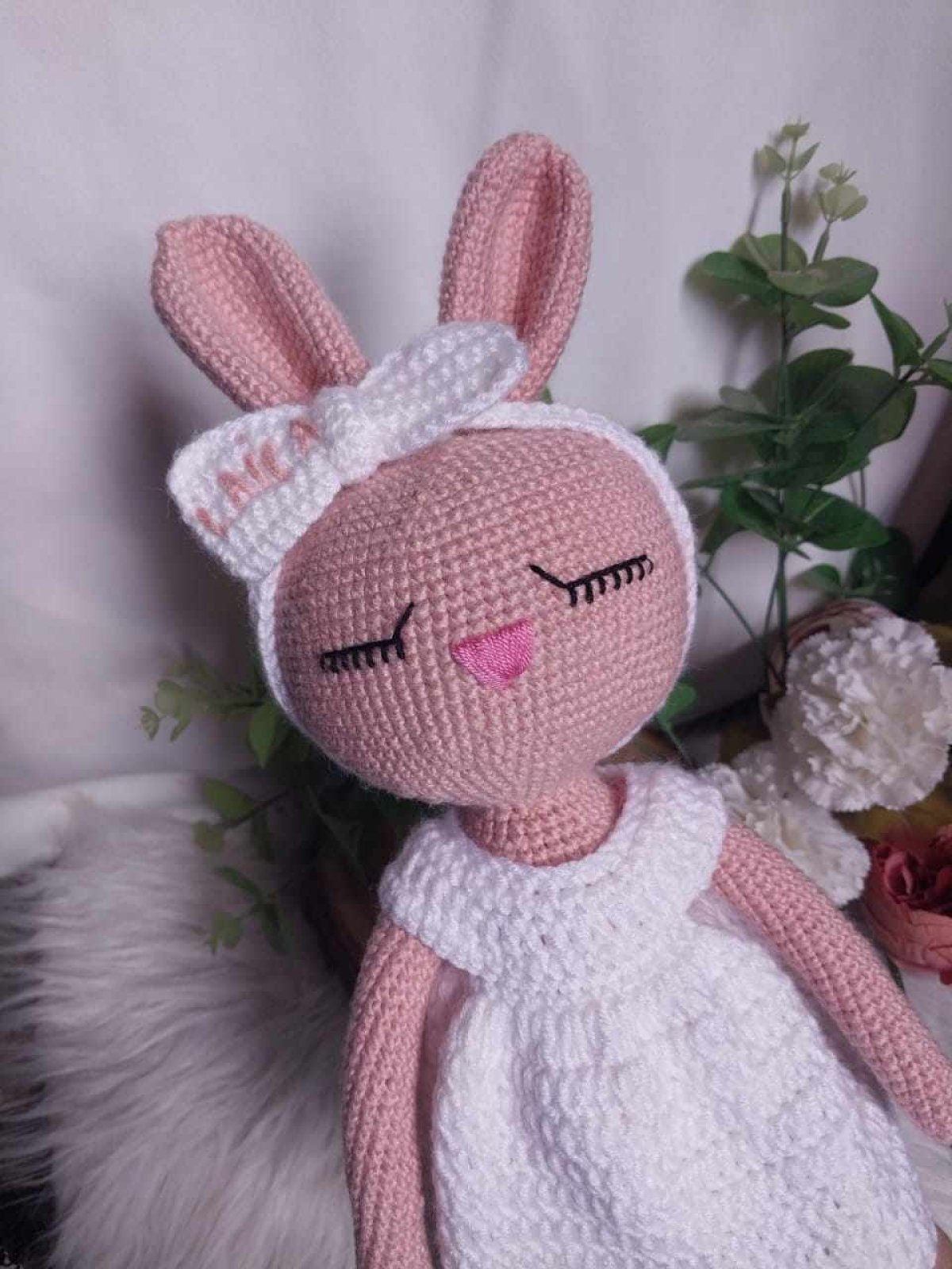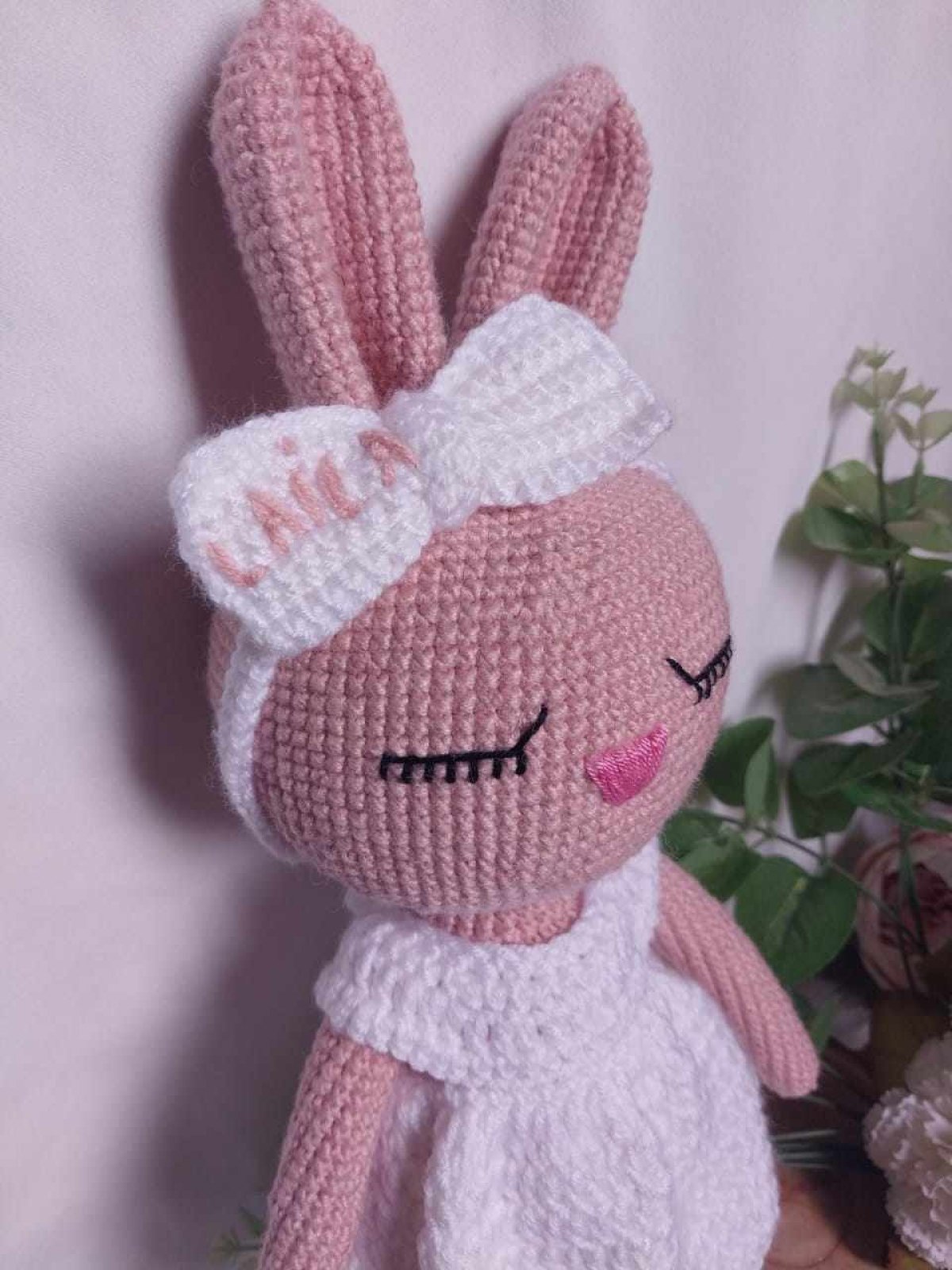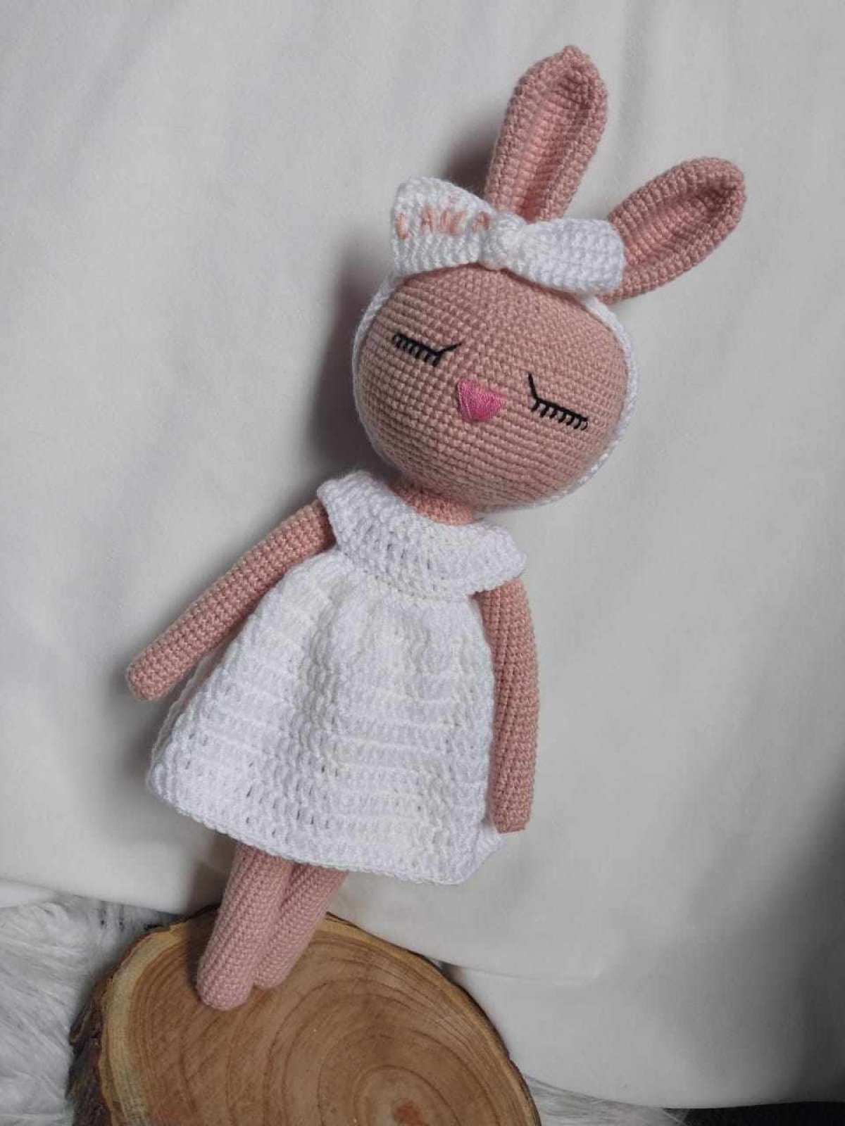 35cm Amigurumi Bunny with a dress and a hair piece separate from the body. High-quality imported thread. Choice of thread type and color is available.