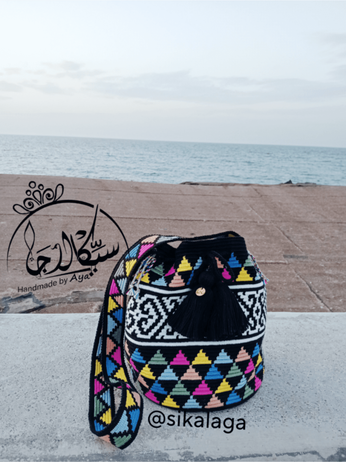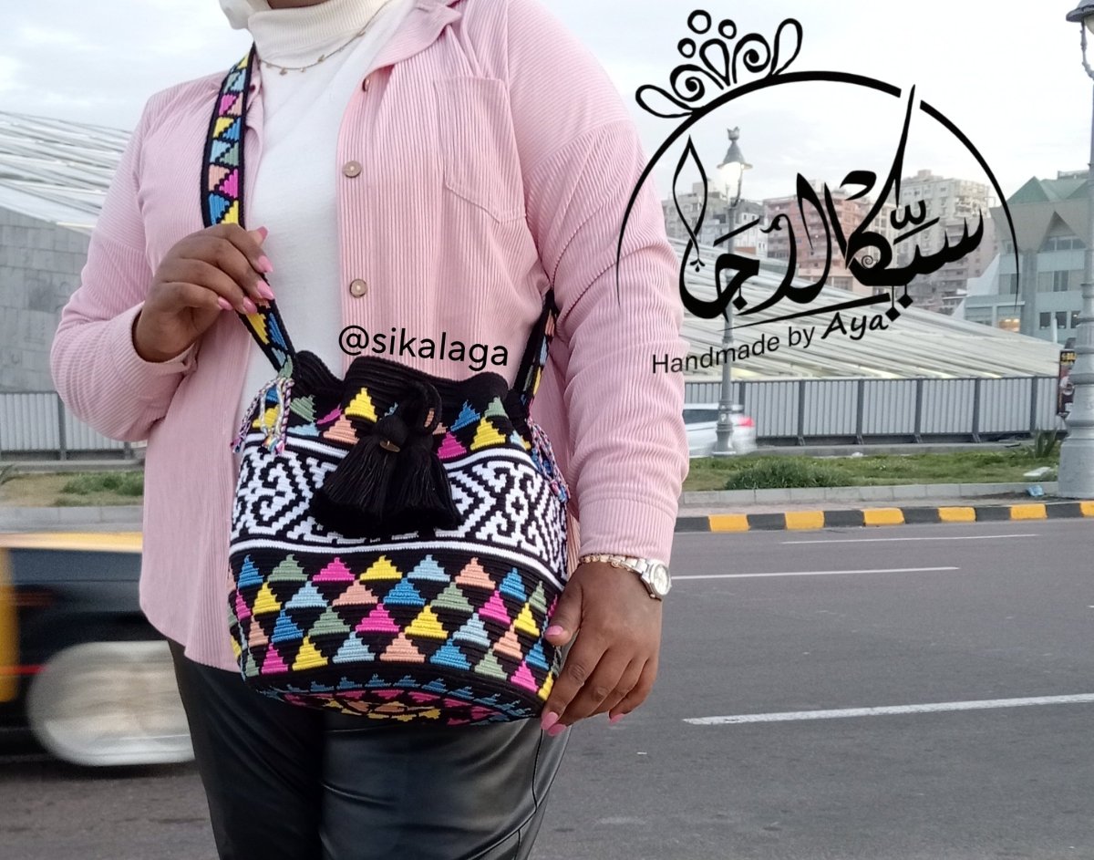 Mochila bag 100% handmade Bag size: Height 24cm and base diameter 20cm The material is Turkish cotton yarn You can customize the colors and size