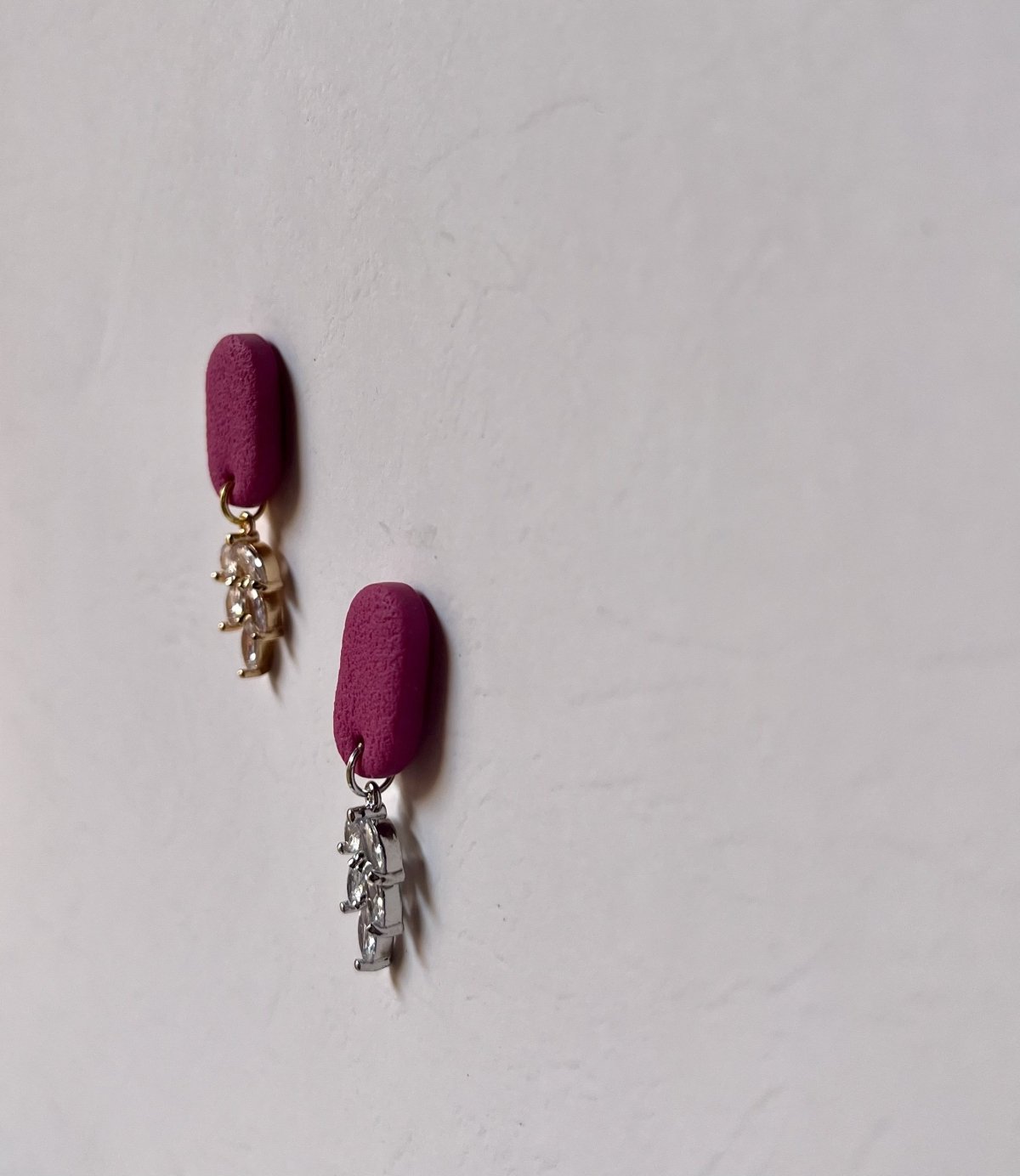 Earrings Description: handmade from polymer clay with a stainless steel studs , rust resistant and it doesn't cause allergies , very light weight You can choose your favorite color for the clay part.” Available with silver or gold pendant. measurements : 2.2* 1 cm