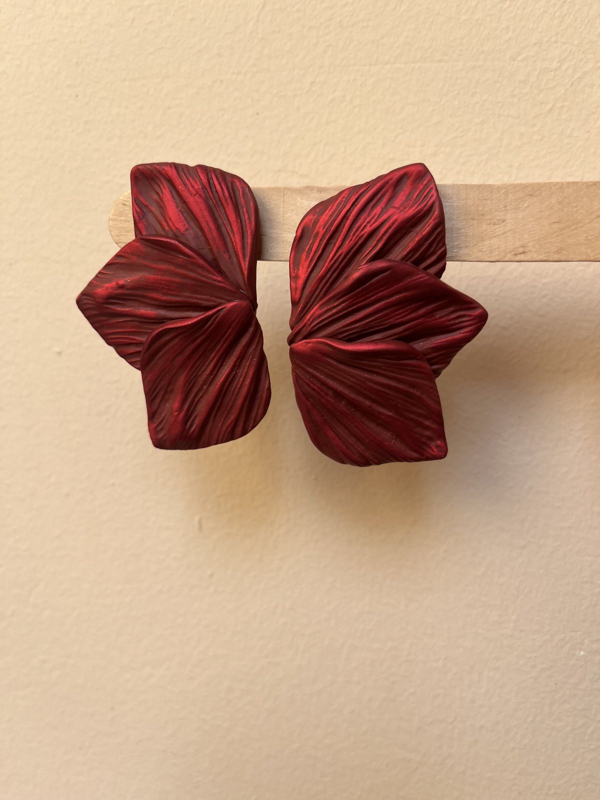 Earrings Description: handmade from polymer clay with a stainless steel studs , rust resistant and it doesn't cause allergies , very light weight measurements : 3* 5.5 cm