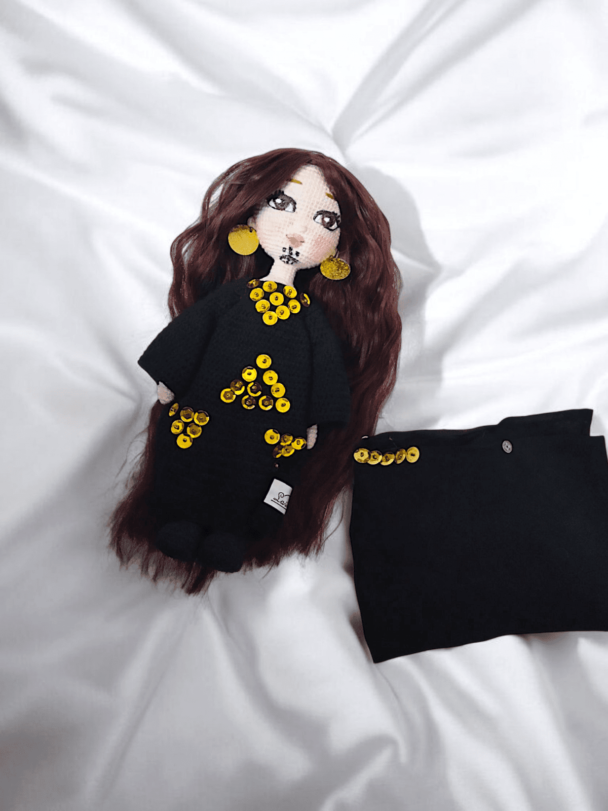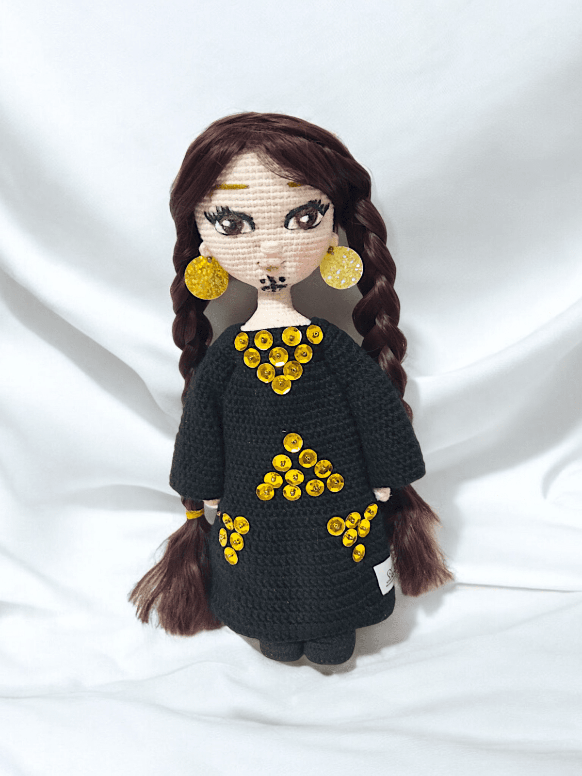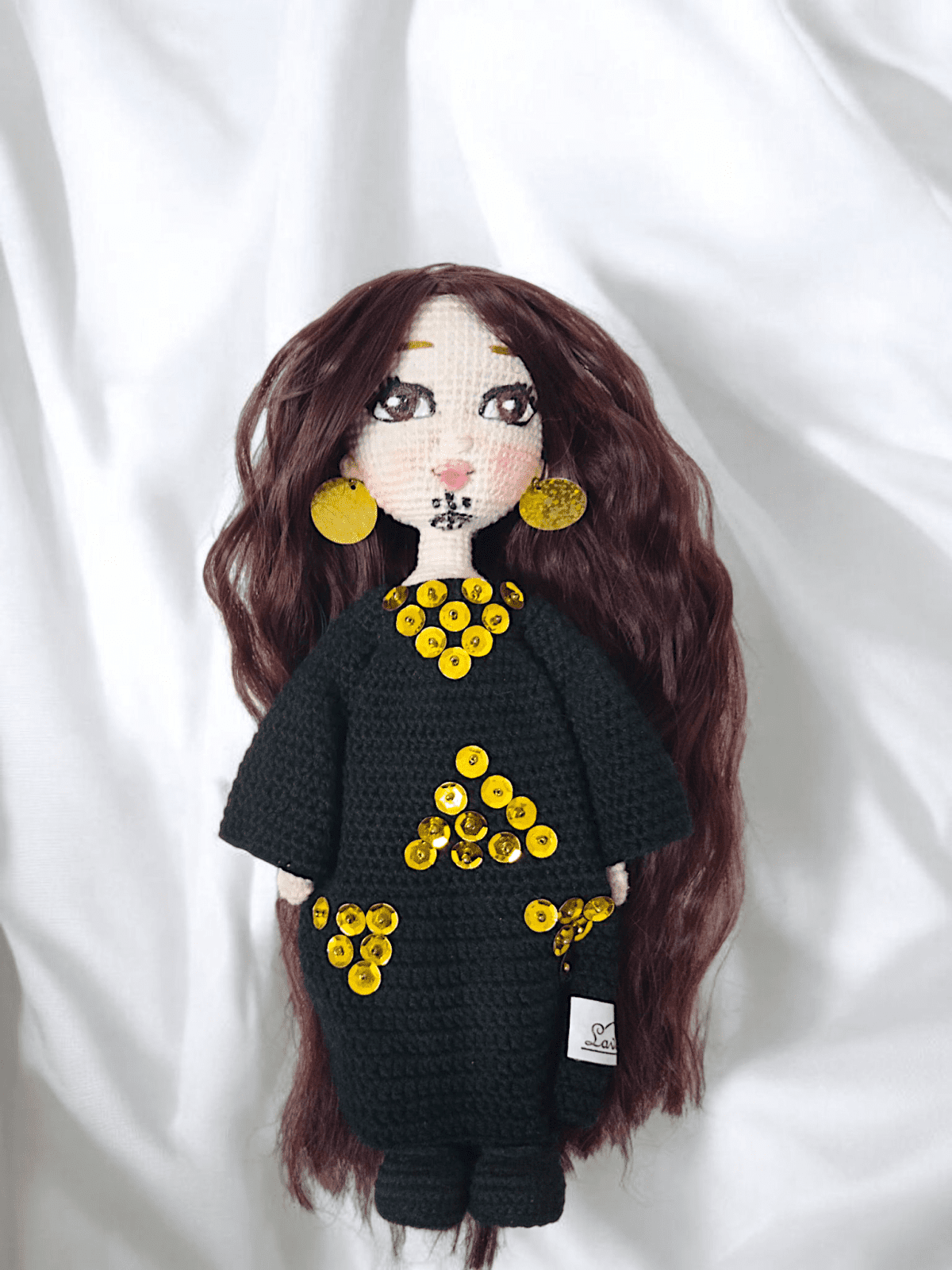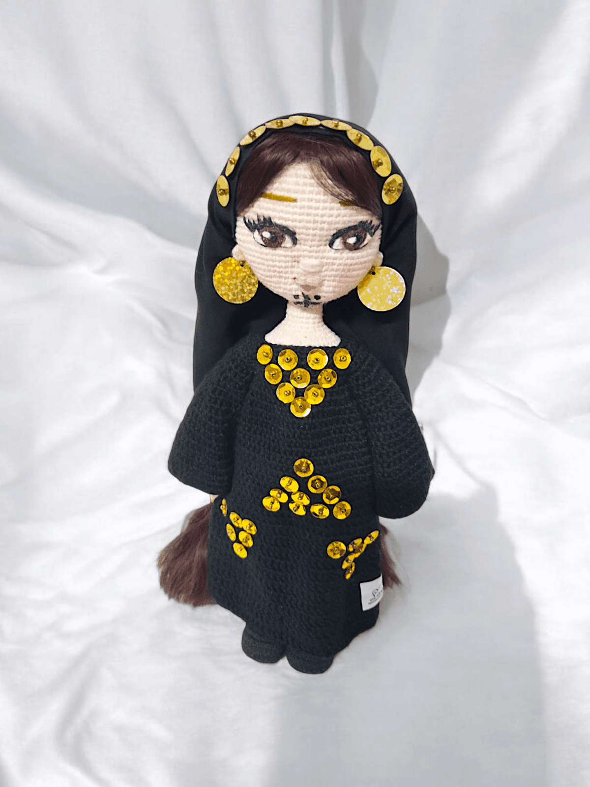 Hanady Sa'edy woman 30 cm Wire skeleton for easy movement Embroided eyes Thermal hair Washable Fabric removable veil