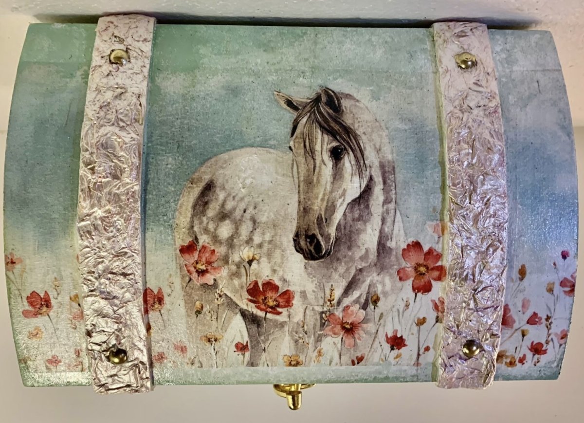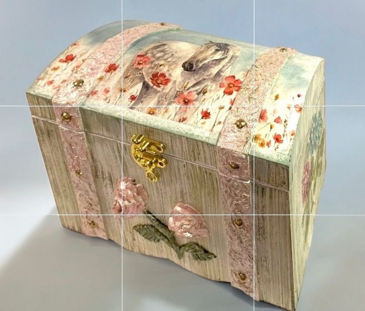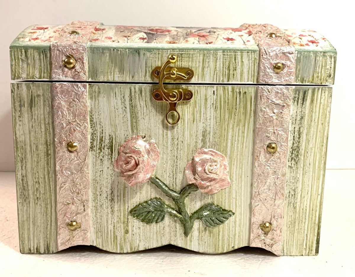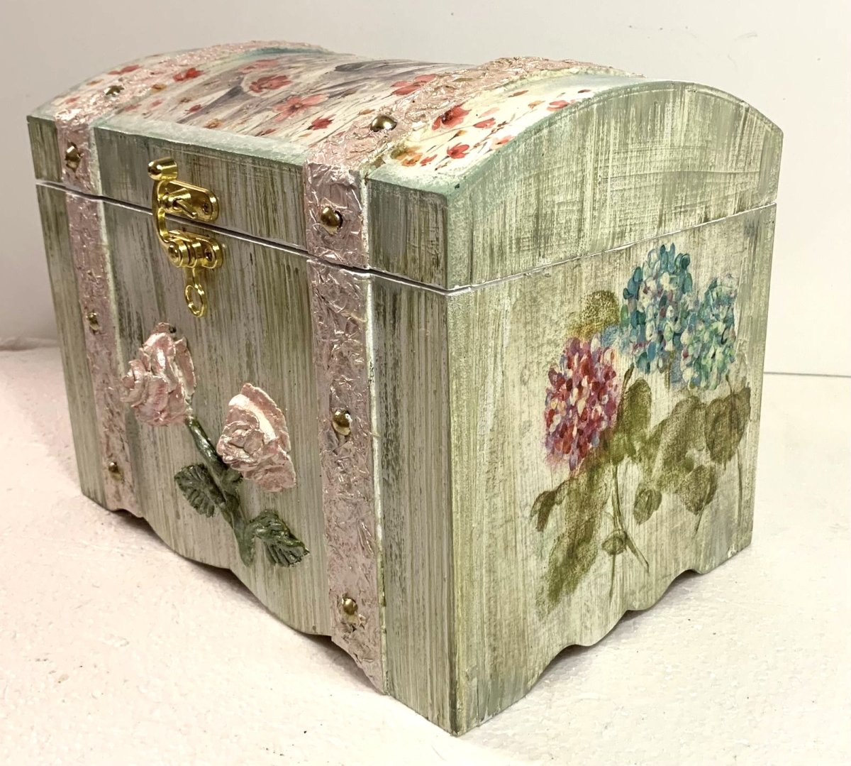 Hand made wooden decoupage box painted with acrylic colors size 30*21*20 cm.