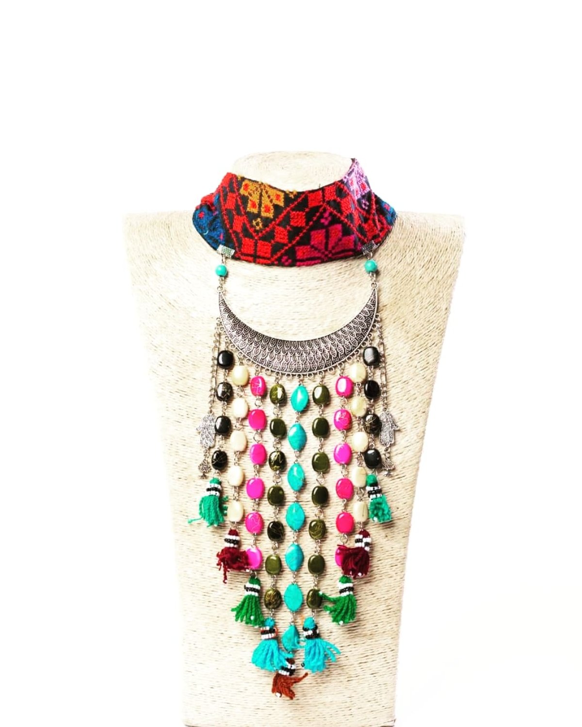A Sinai coulet from Al-Arish women’s embroideries, with Sinai tassels, colored stones, and silver plated copper.