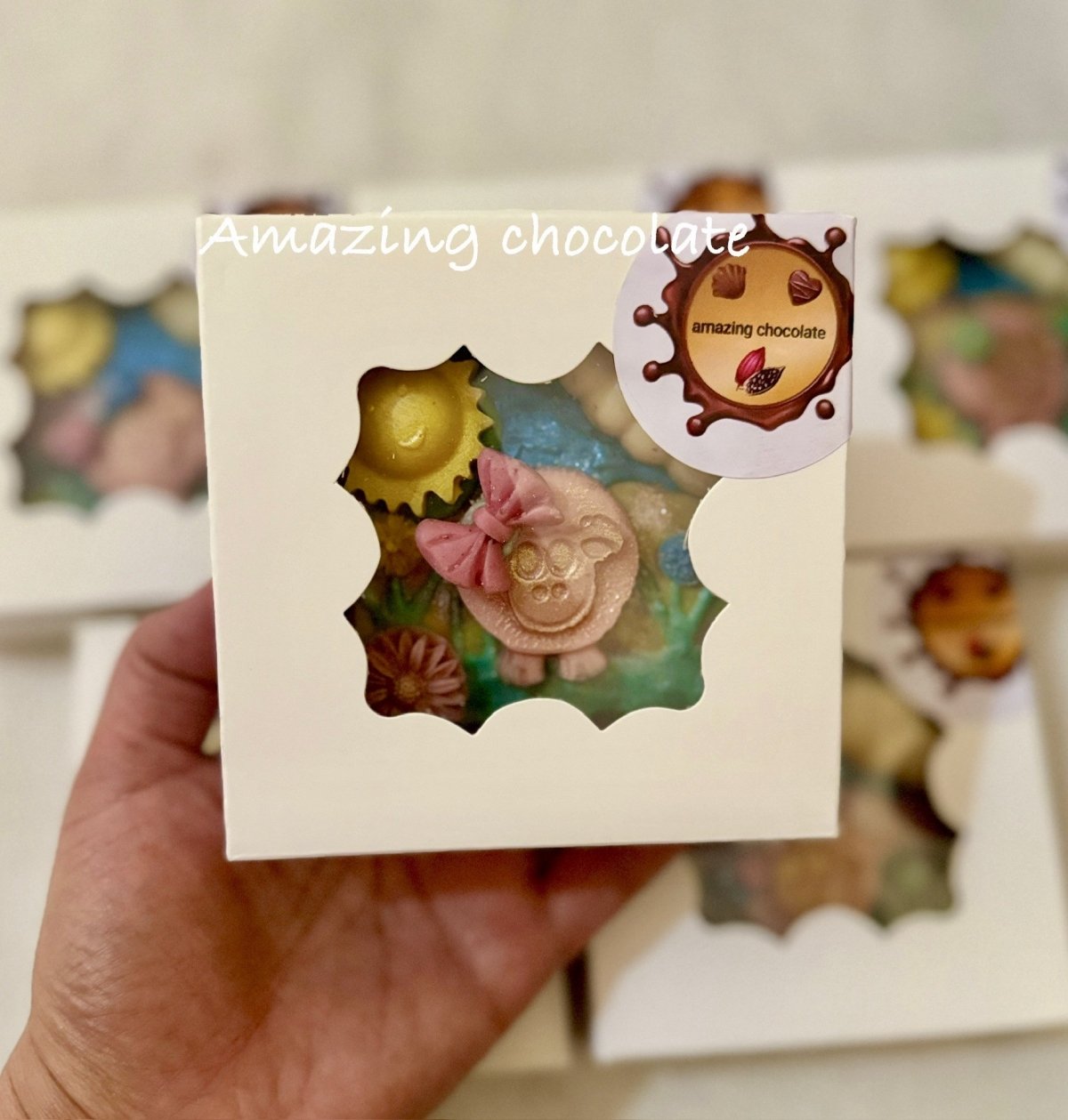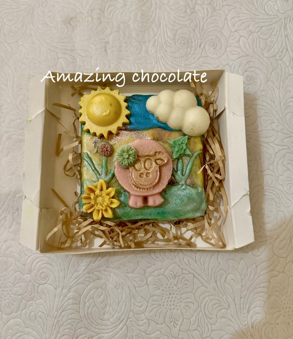 Eid lamb chocolate stuffed with nuts and a knanaf with bastachio