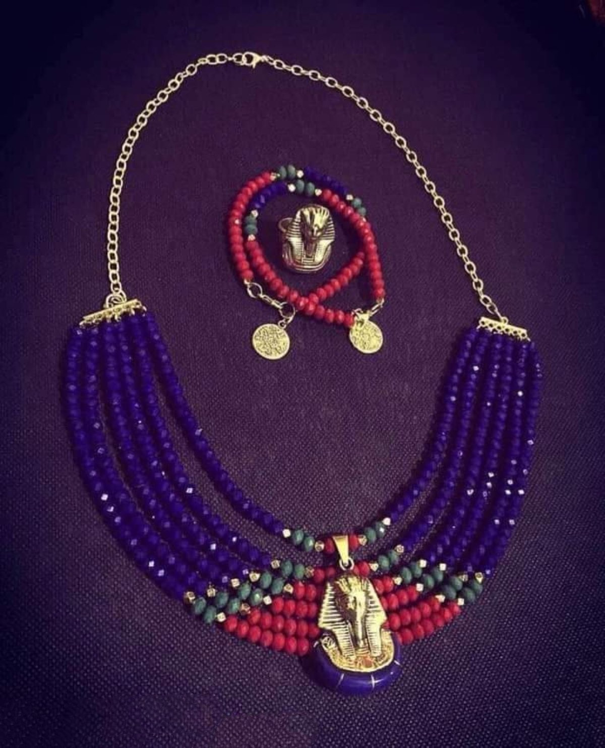 Pharaonic necklace made of Tutankhamun's copper pendant and matte crystal