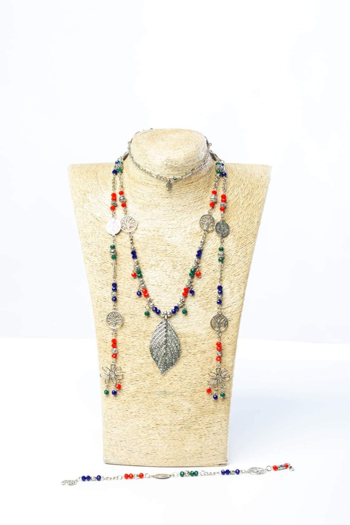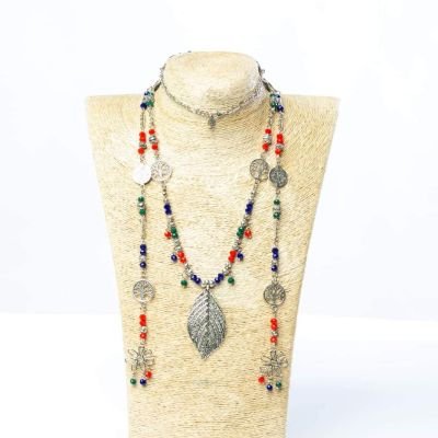 Scarf made of silver-plated copper, matte crystal, and various pendants