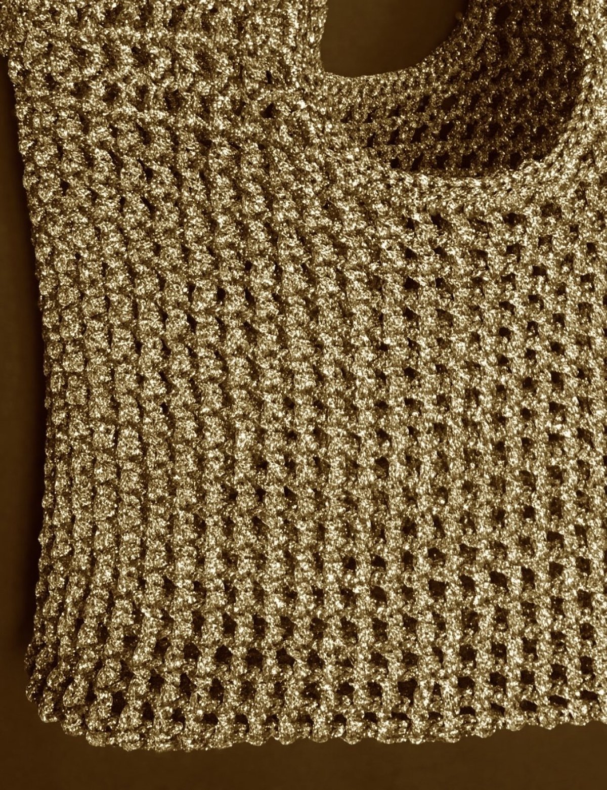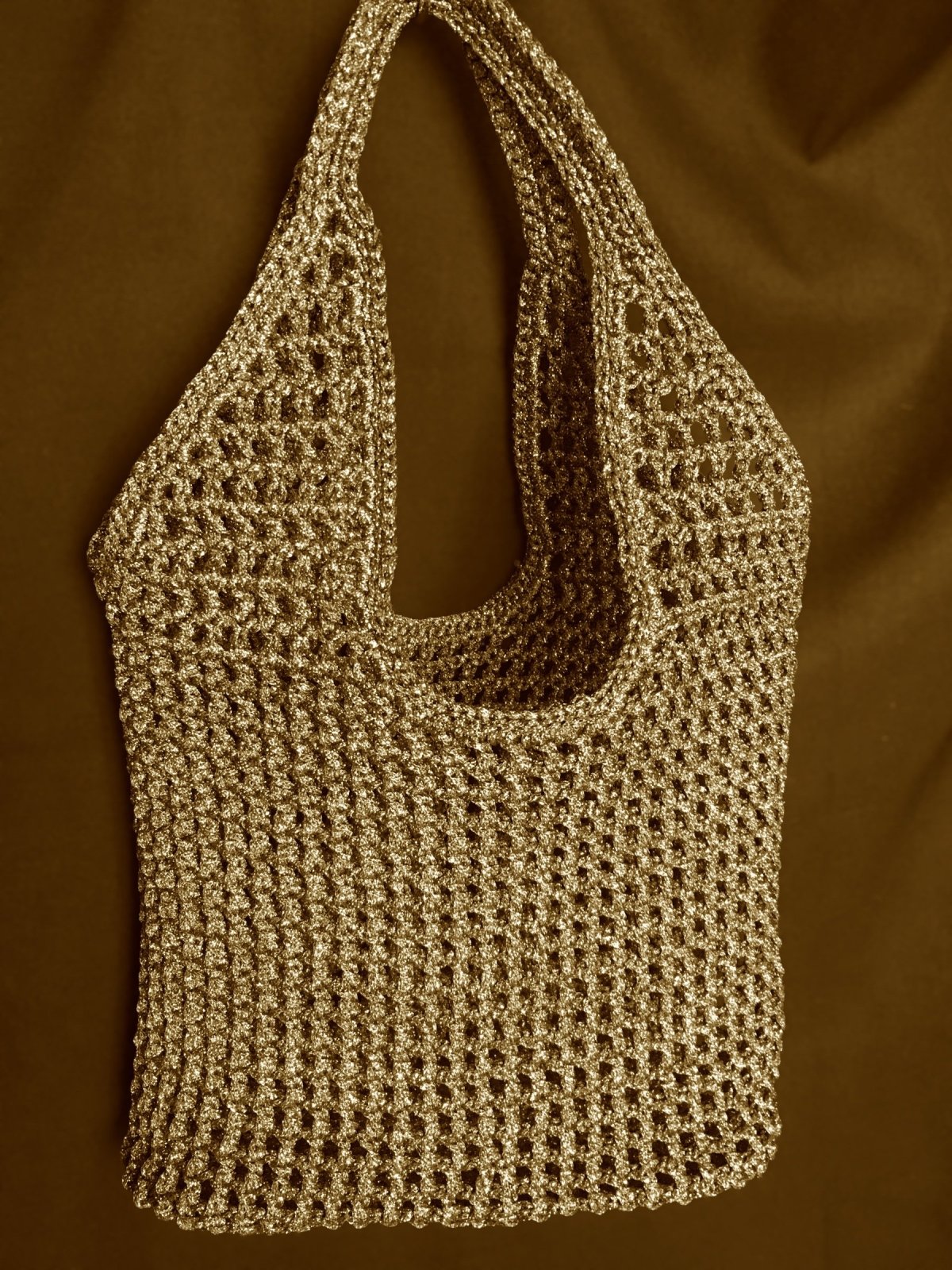 Handmade Golden Glitter crochet bag Bag dimensions: height 53 cm , width 34 cm, base 10 cm