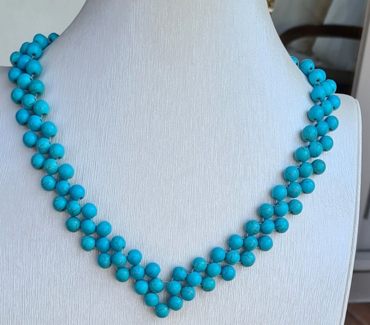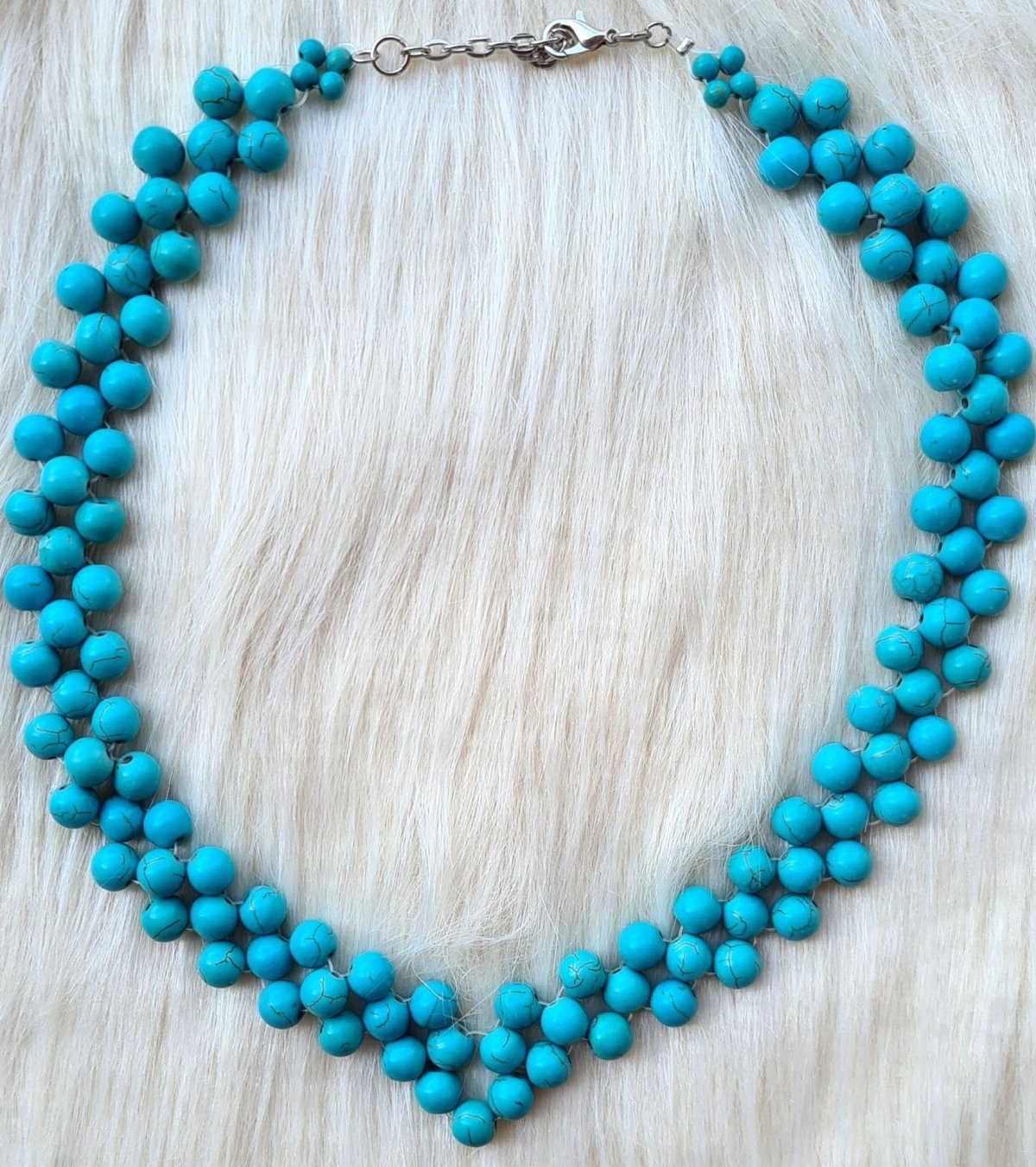 A size 8 short necklace made of blue turquoise.