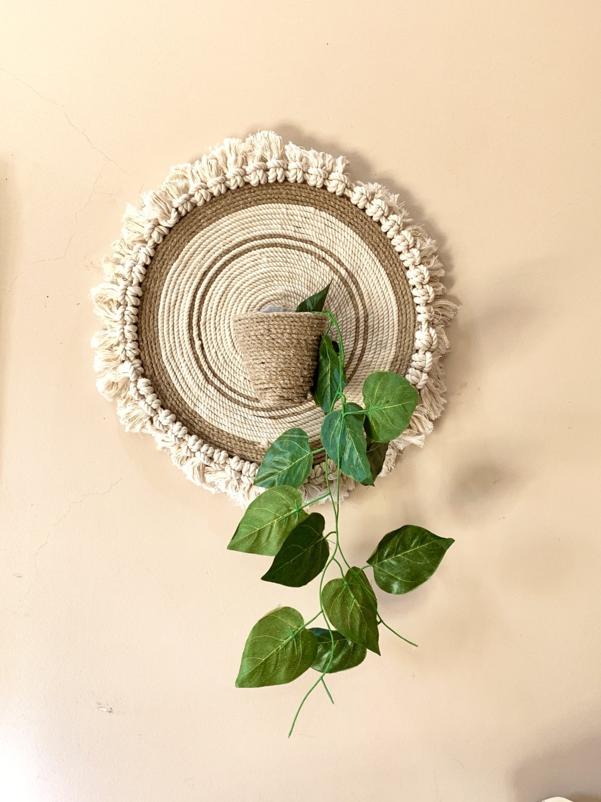 Wall decor is a coaster 38 cm from jute and macrame material with plant suitable for boho style lovers