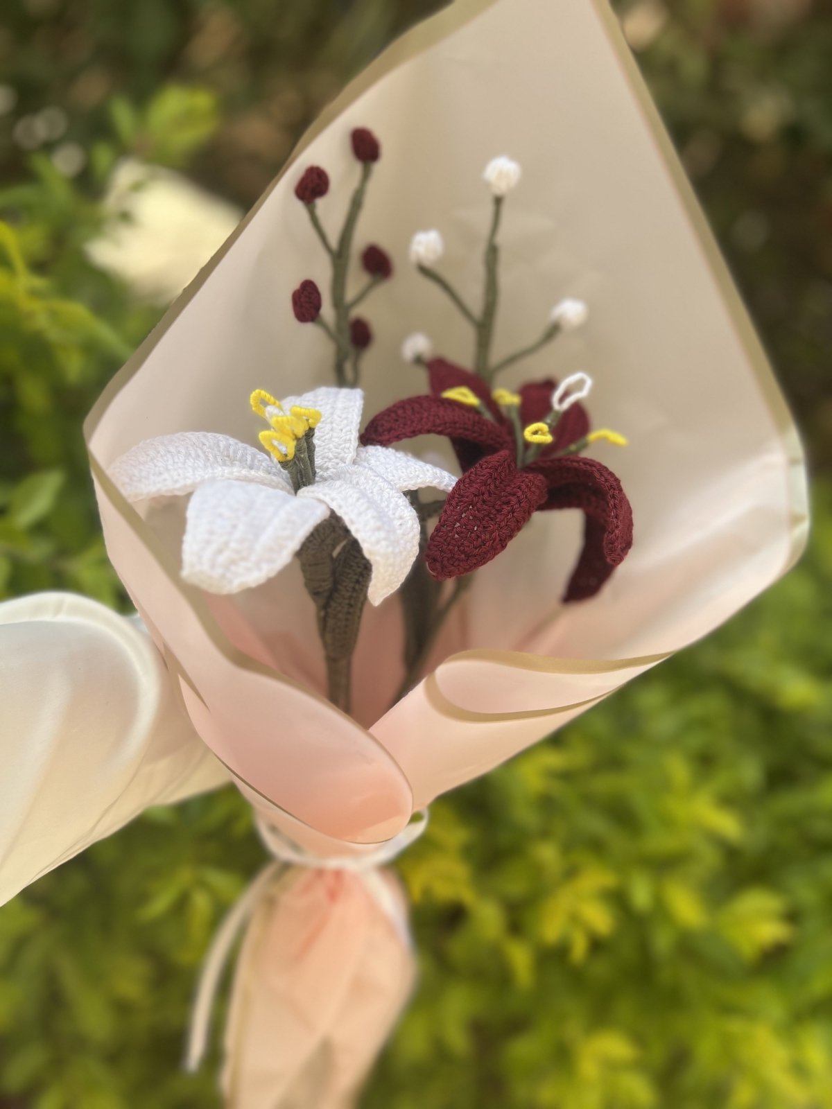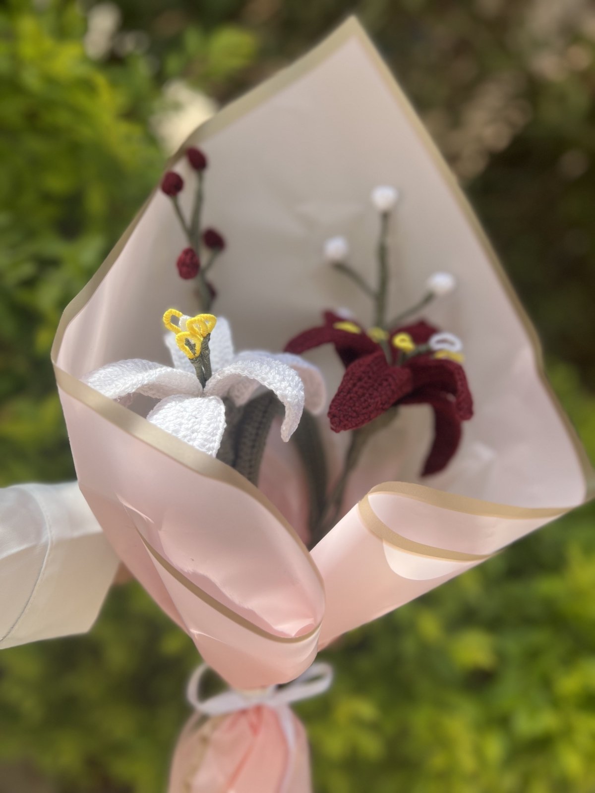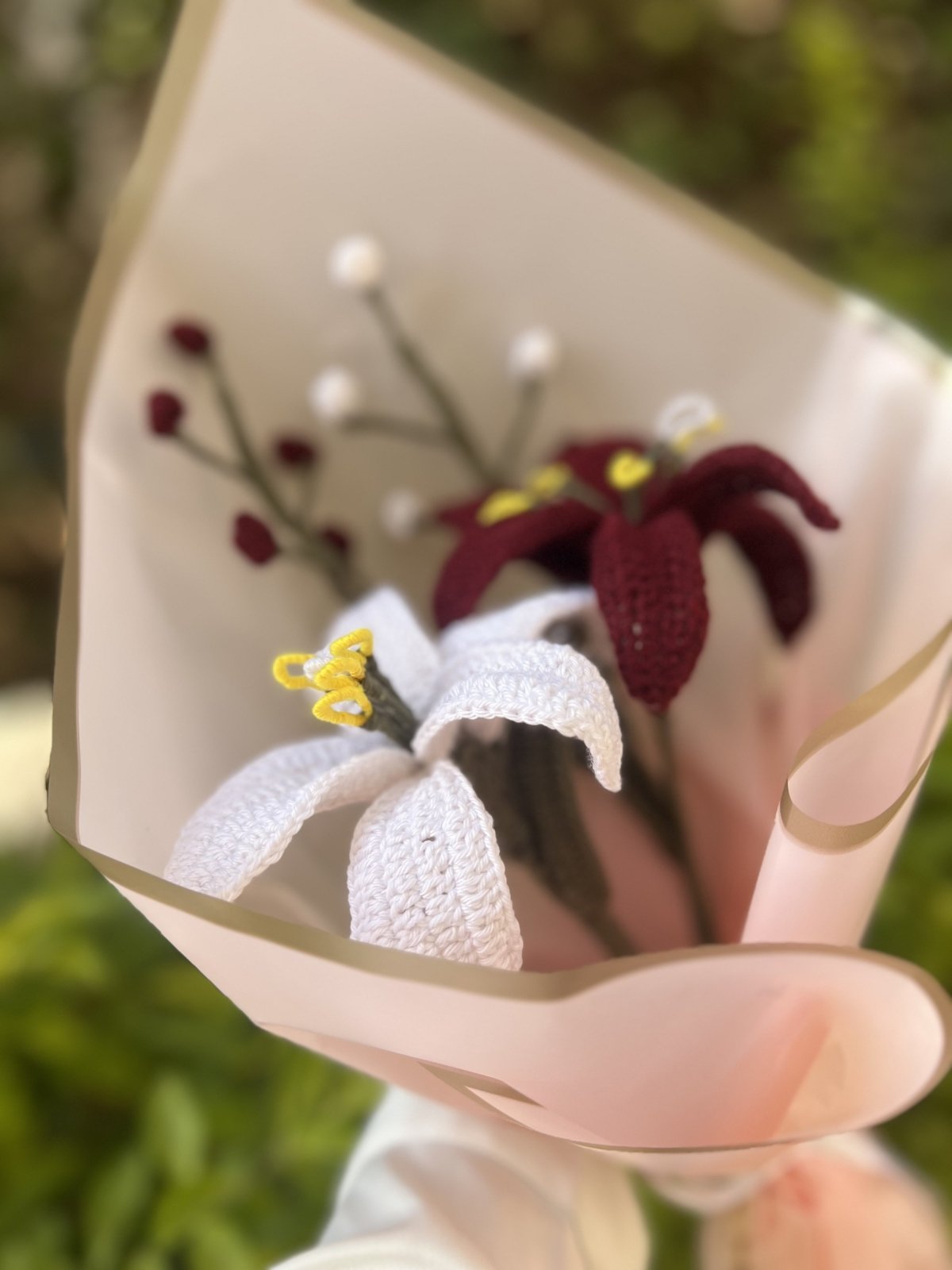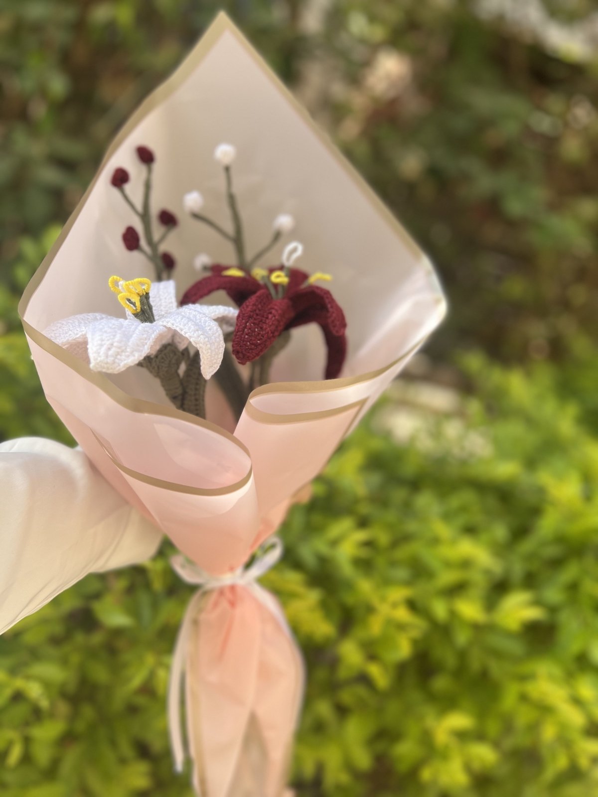 Bouquet crochet each flower costs 250 le 15 cm without cover
