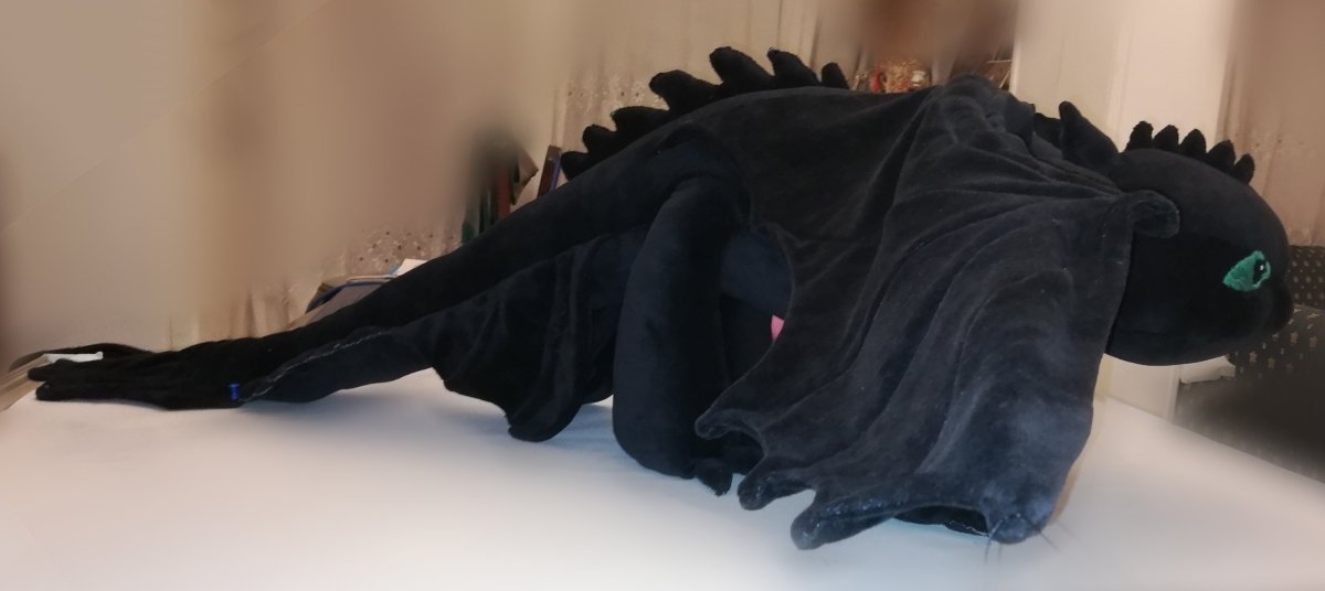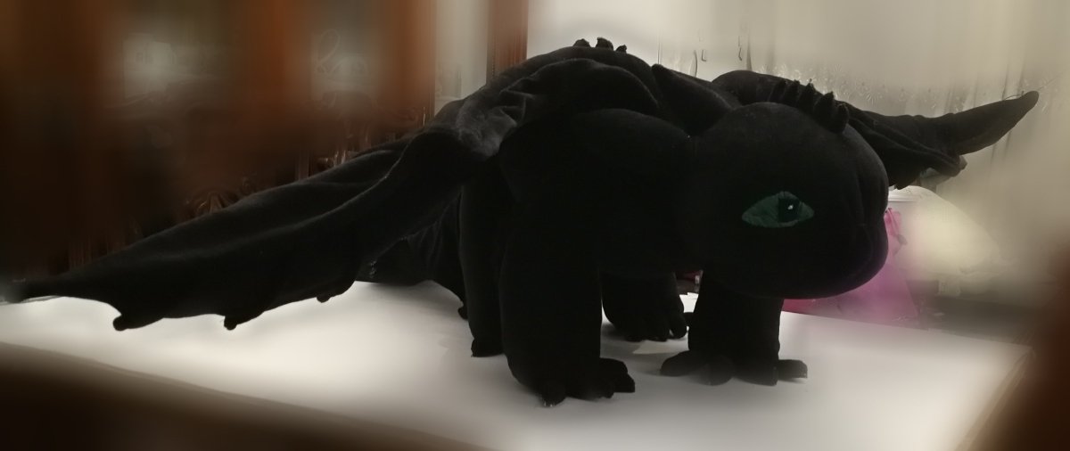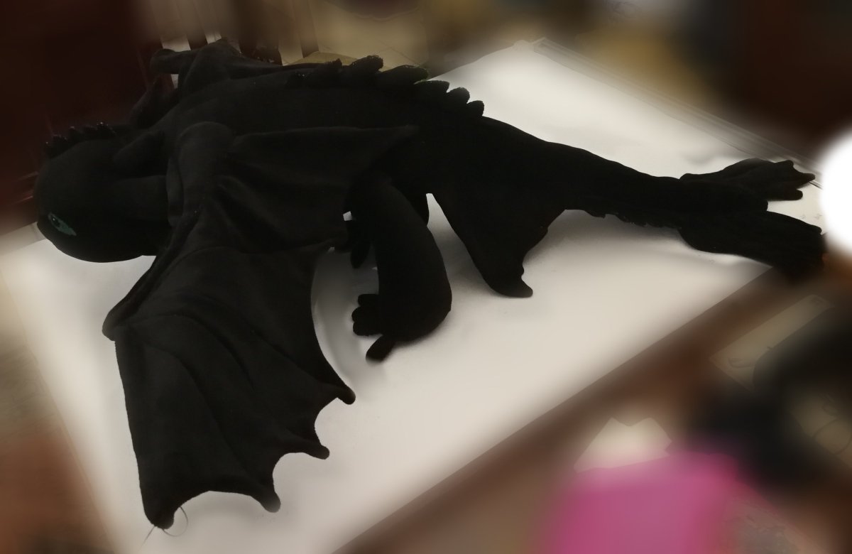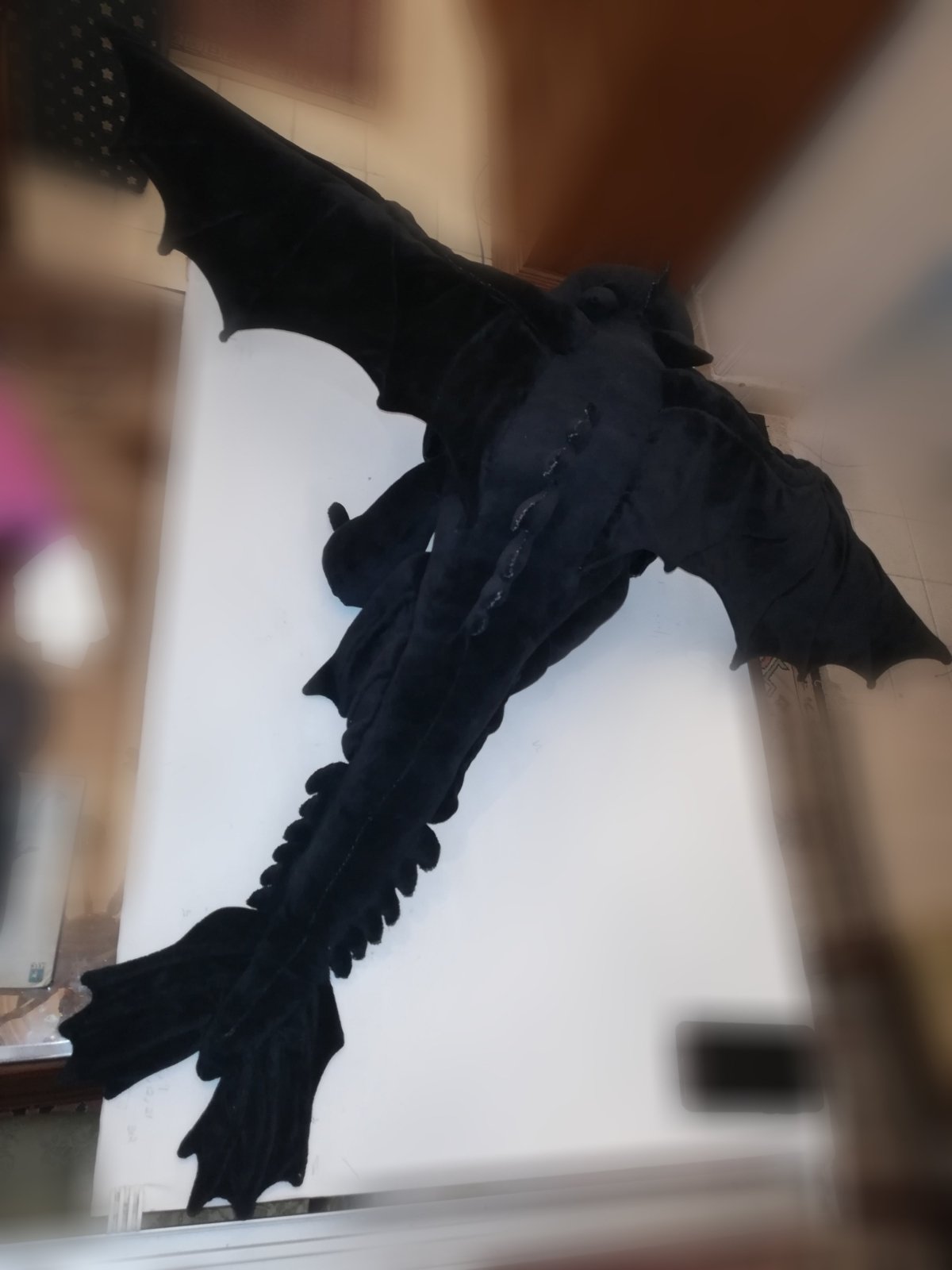 Toothless the Night Fury stuffed doll, inspired by the mythical movie How to Train Your Dragon, is made from Smooth velvet fabric and measures 120x110x45 cm