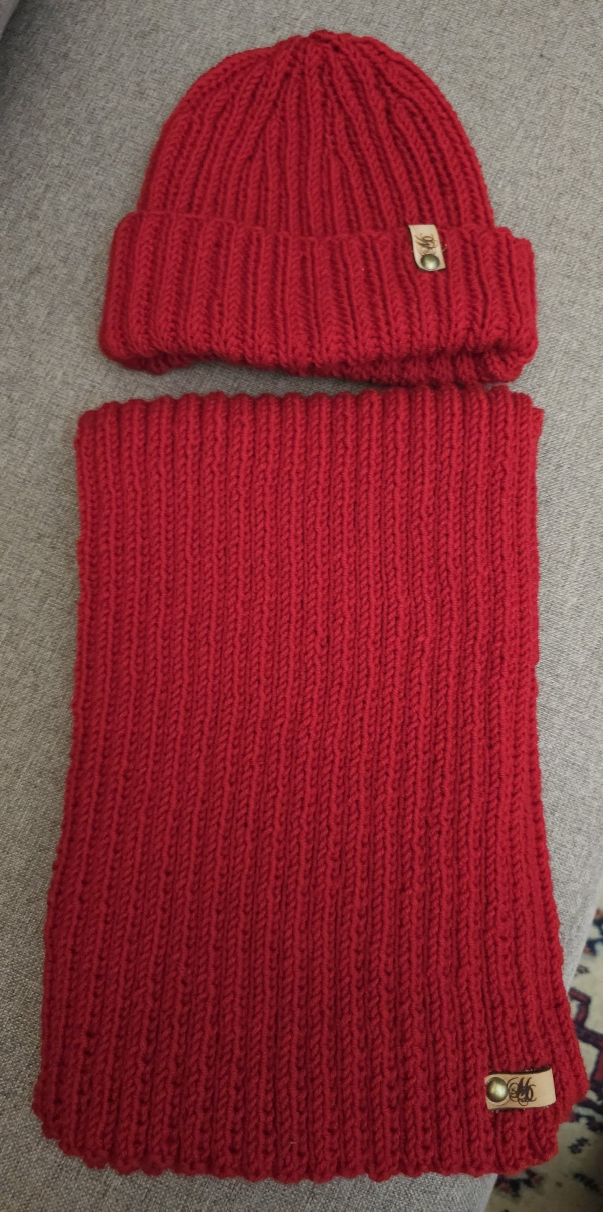 Men's Knitted scarf and Crochet Hat made of 50% wool yarn. The Scarf is 150 cm