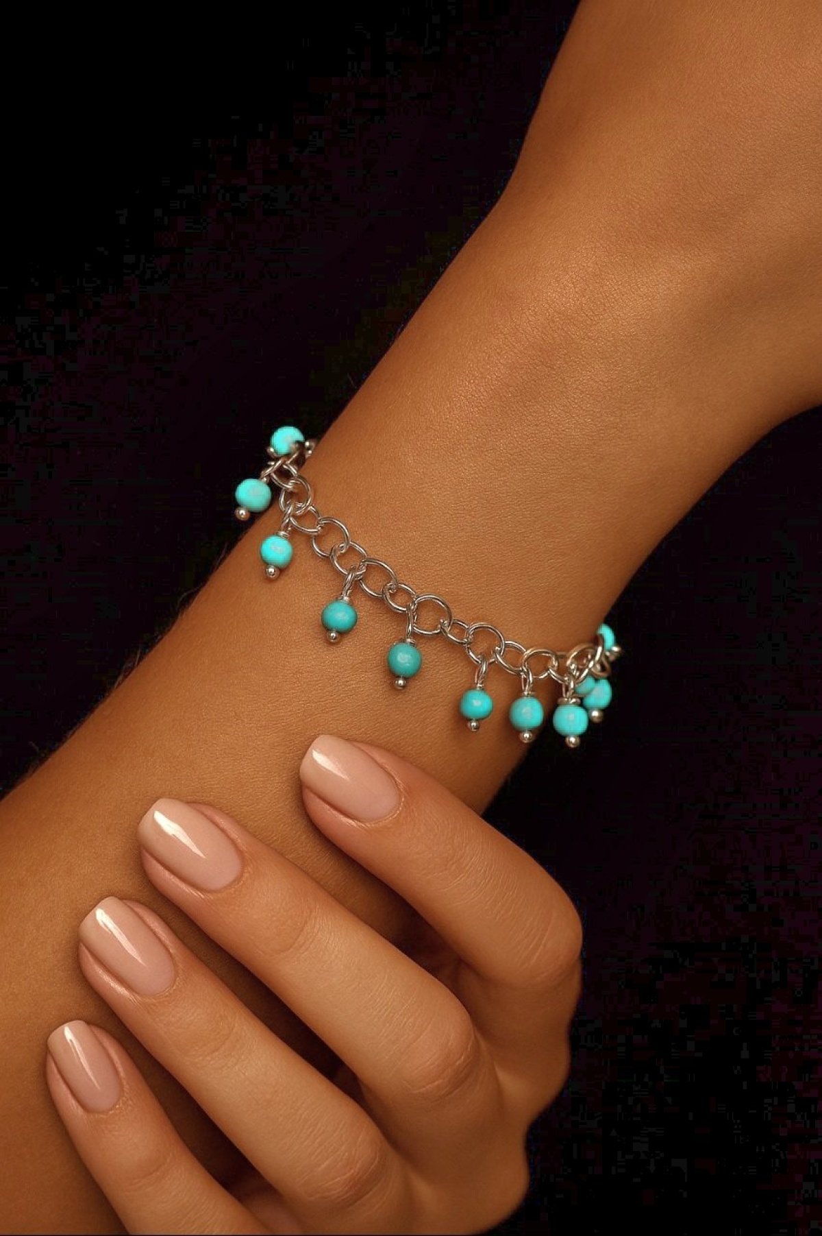 Silver bracelet inlaid with very nice turquoise stones