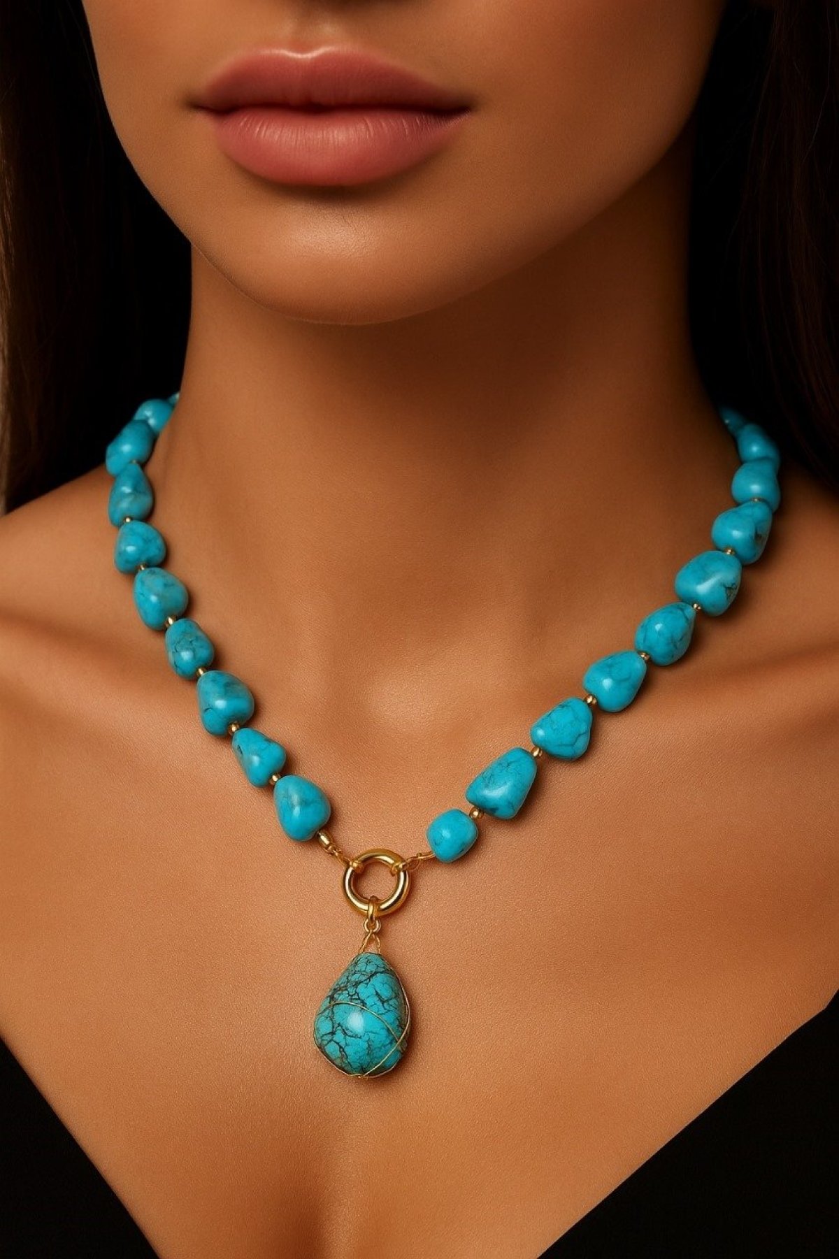 Turquoise stone necklace with stainless steel spacers